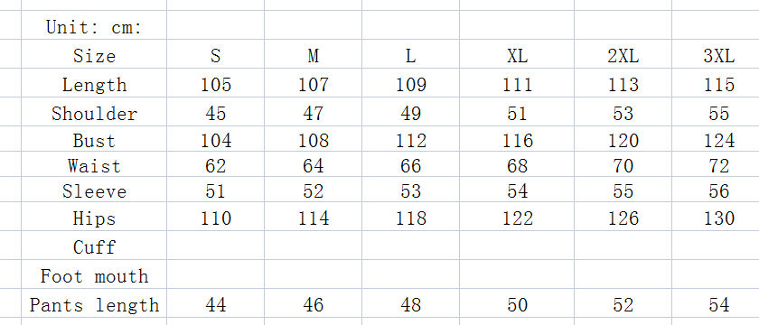 Size: European Code S, European Code M, European Code L, European Code XL, European Code XXL, European Code 3XL