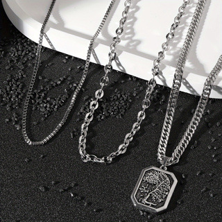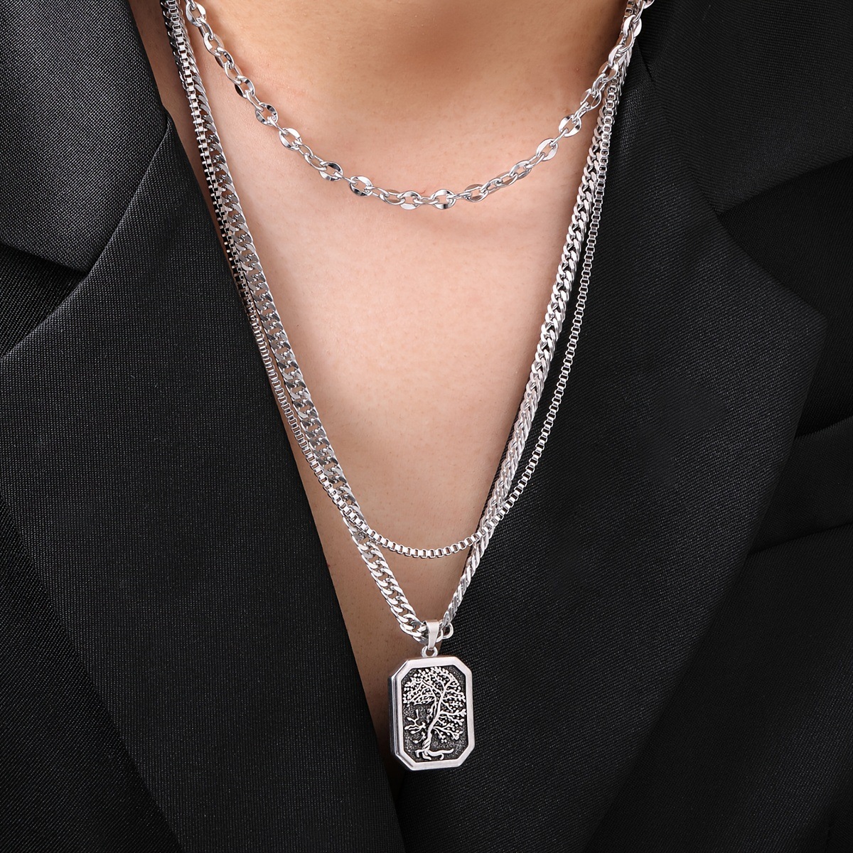 Men's Stainless Steel Casting Tree Of Life Pendant Necklace Suit