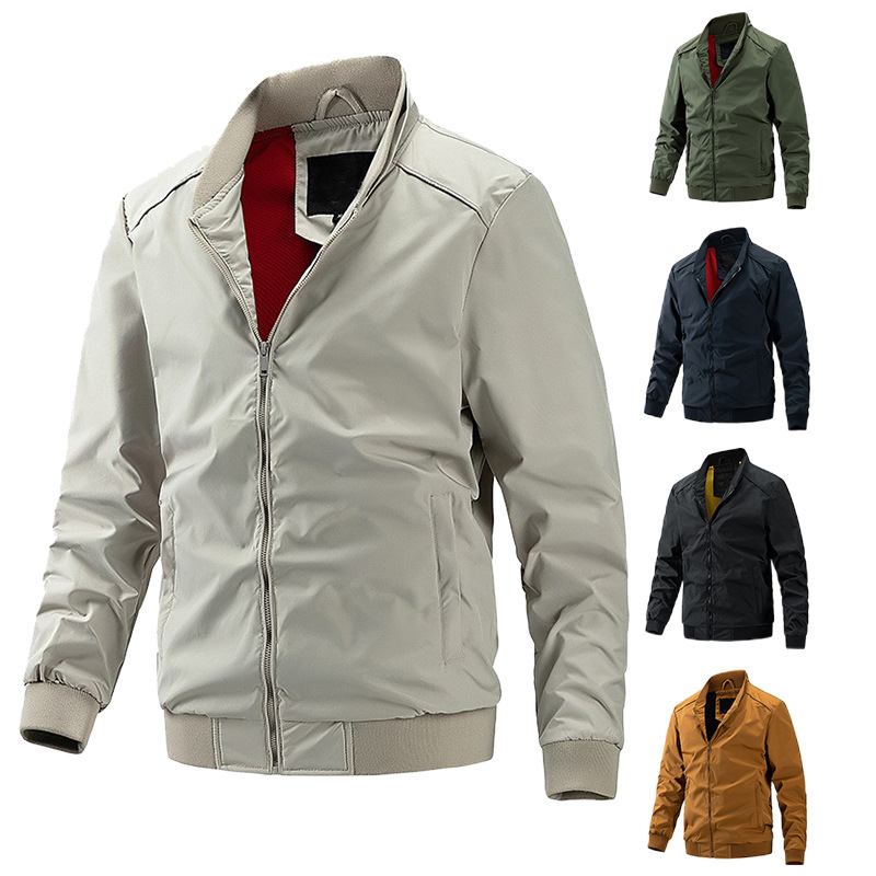Men's Stand Collar Jacket Thin Baseball Jacket Zipper Coat