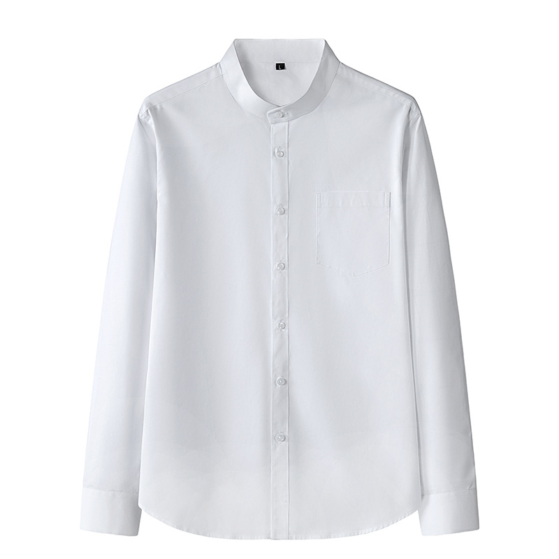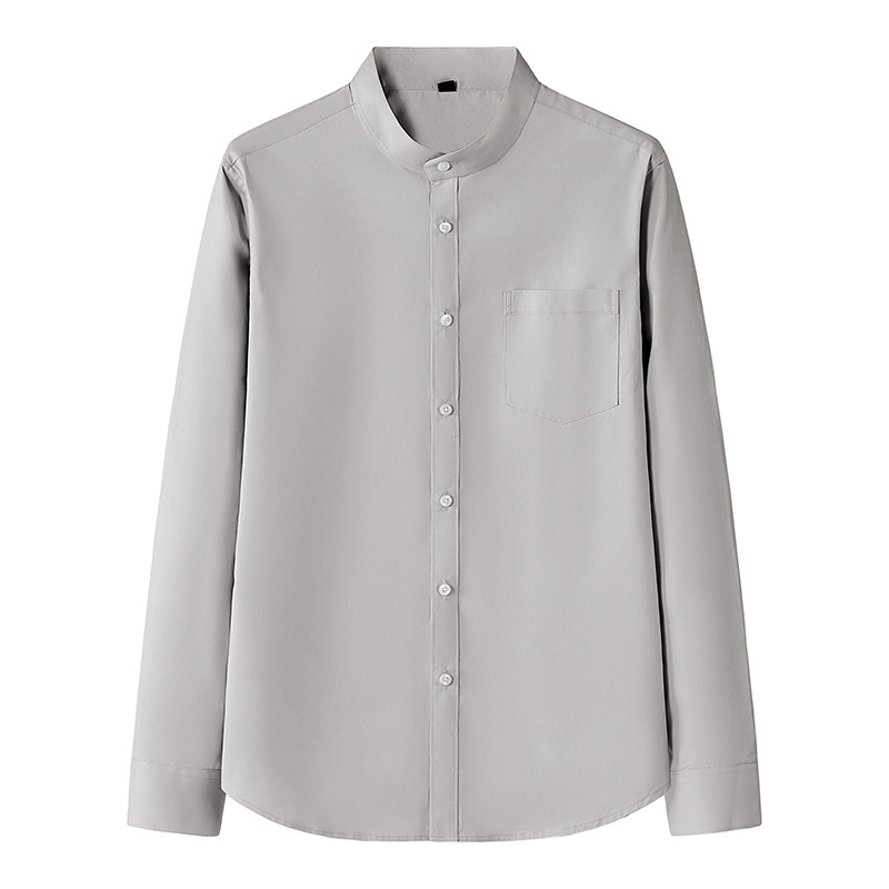 Men's Stand Collar Long Sleeve Slim Fit Solid Color Pocket Shirt