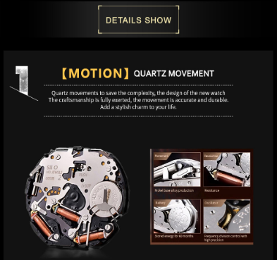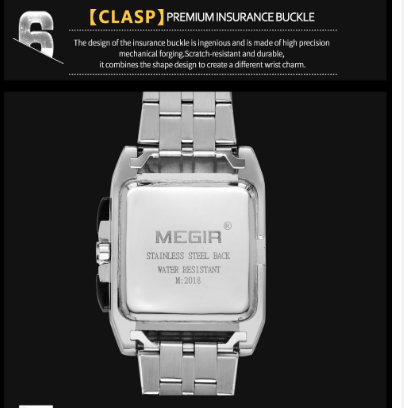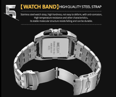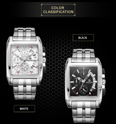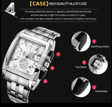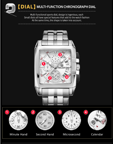 Feature: Stop Watch, 30M Water Resistant, Complete Calendar, Luminous Hands.
