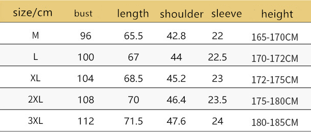 Size: M, L, XL, XXL, XXXL