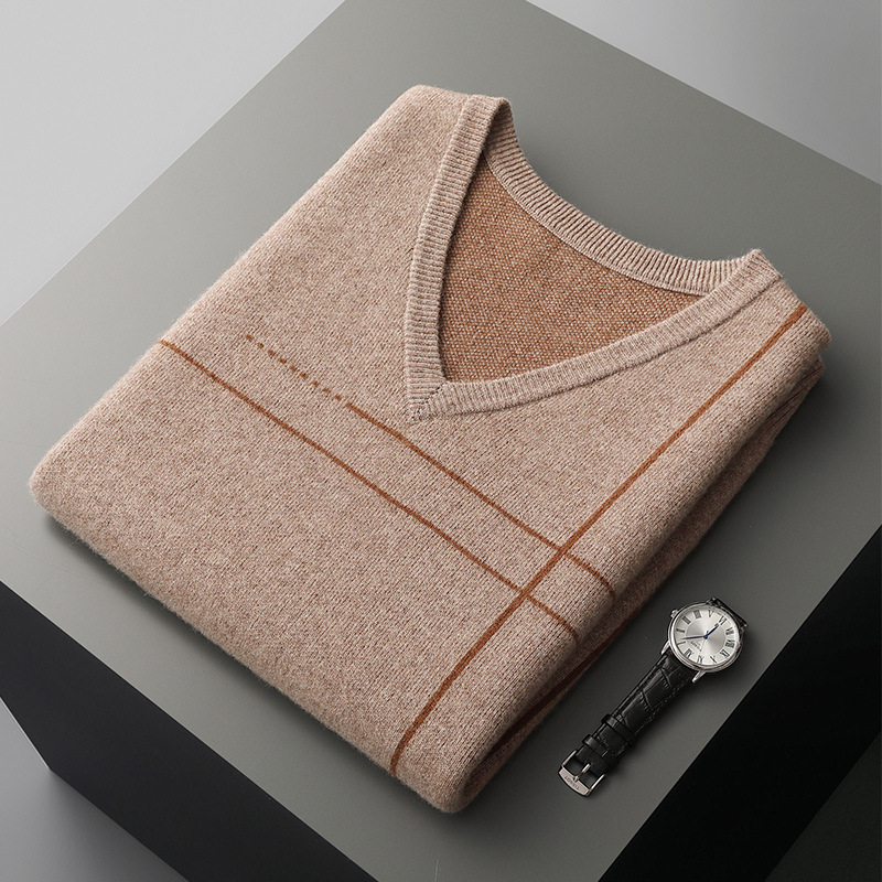 Men's Striped Pullover V-neck Knitted Sleeveless Pure Wool Top