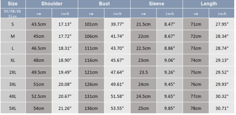 Size: S, M, L, XL, XXL, 3XL, 4XL, 5XL