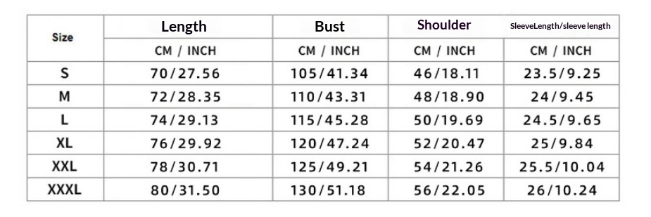 Sizes: S, M, L, XL, XXL, XXXL