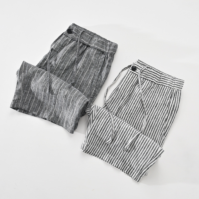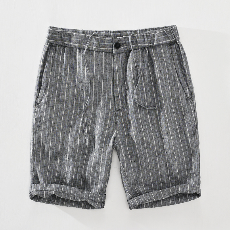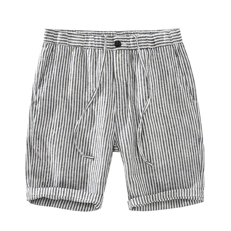 Men's Striped Straight Linen Leisure Shorts