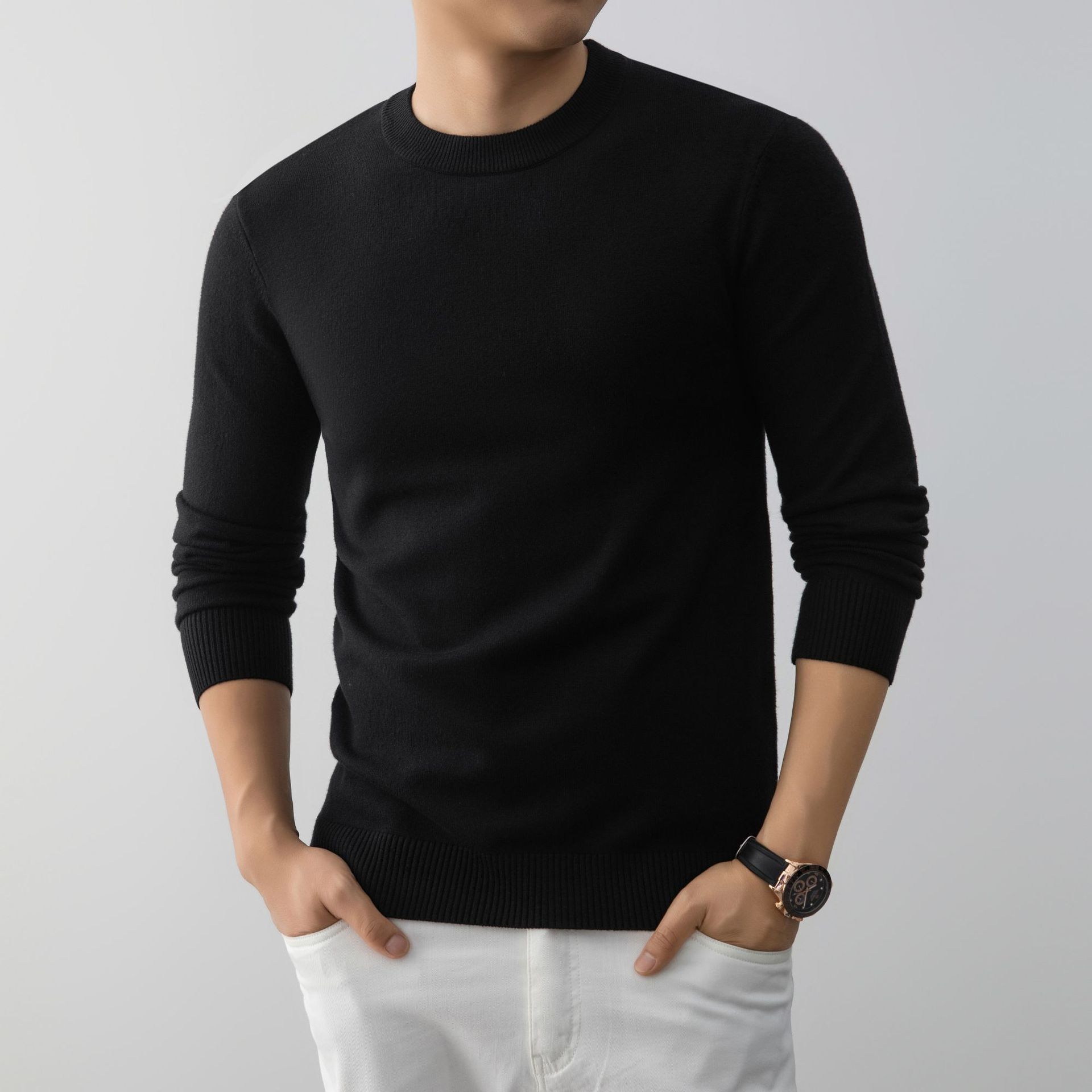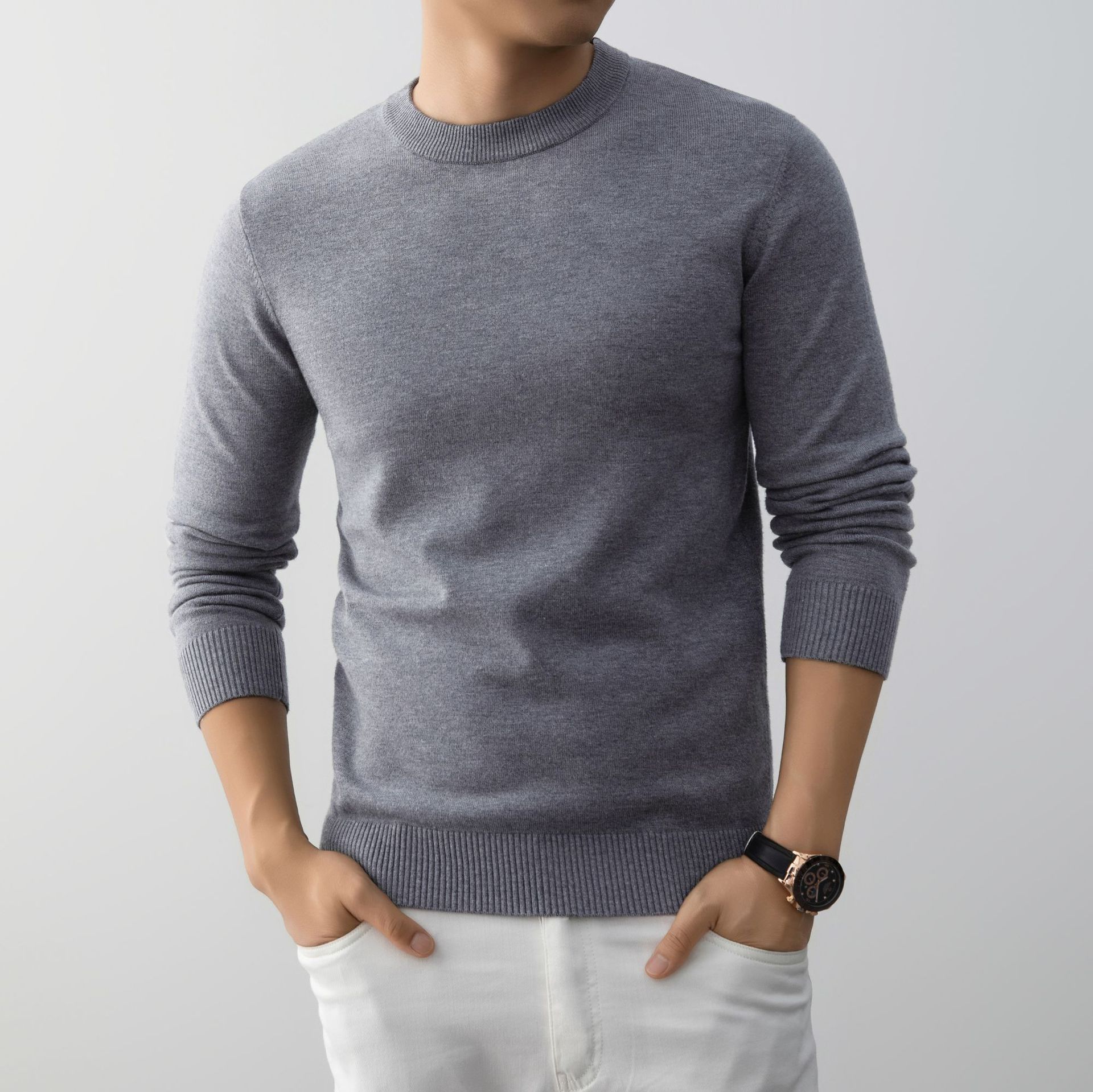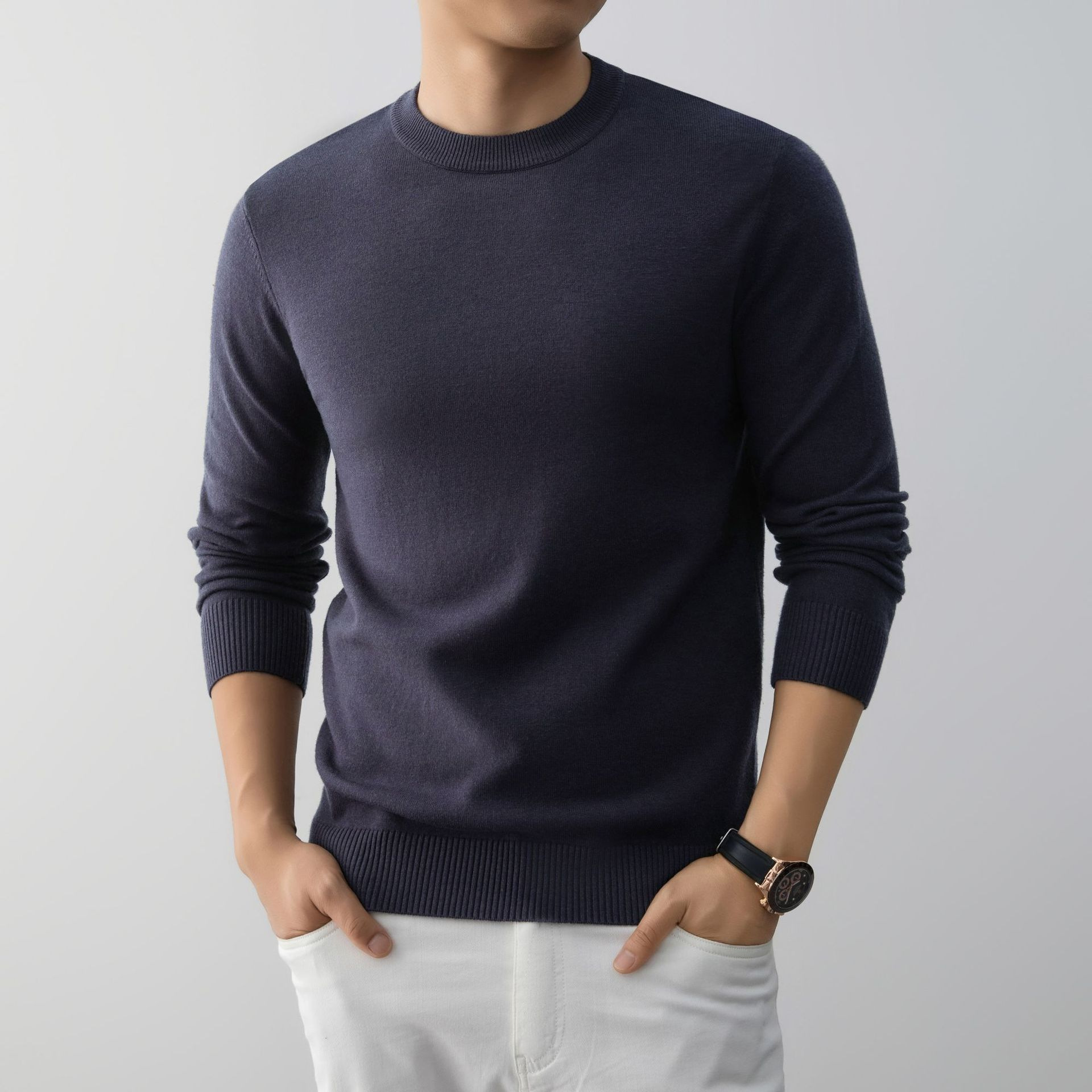 Mens Stylish And Minimalist Crew-neck Knit Sweater