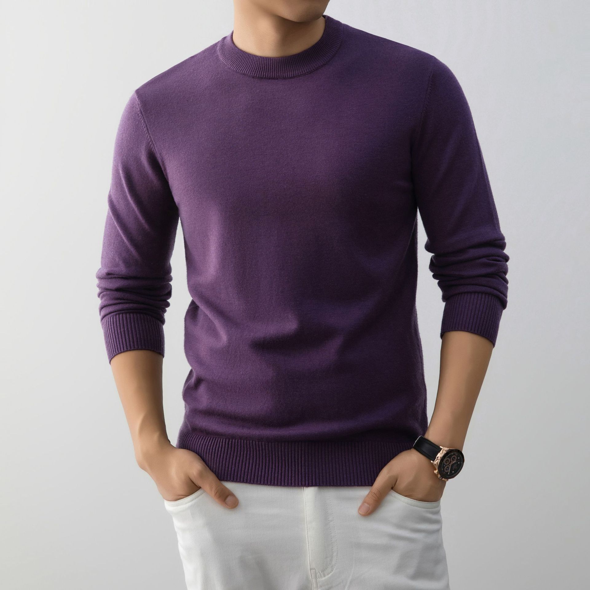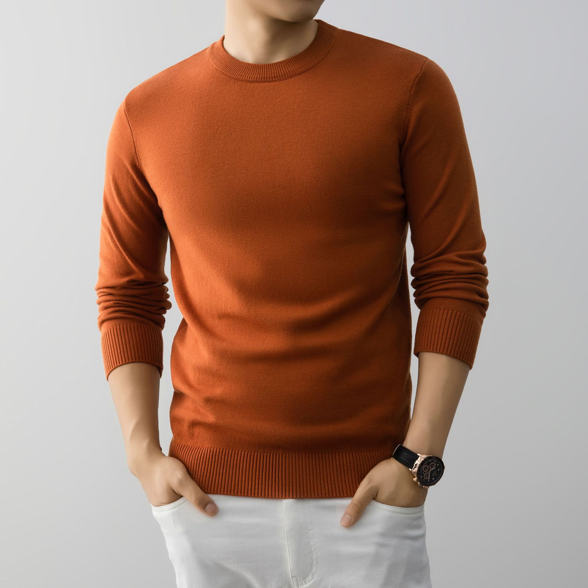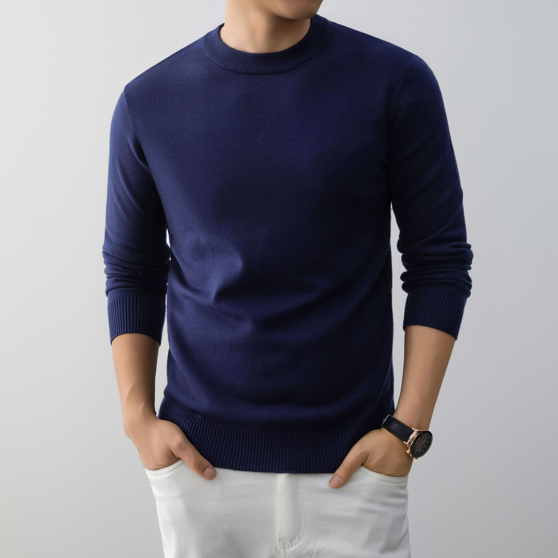 Mens Stylish And Minimalist Crew-neck Knit Sweater