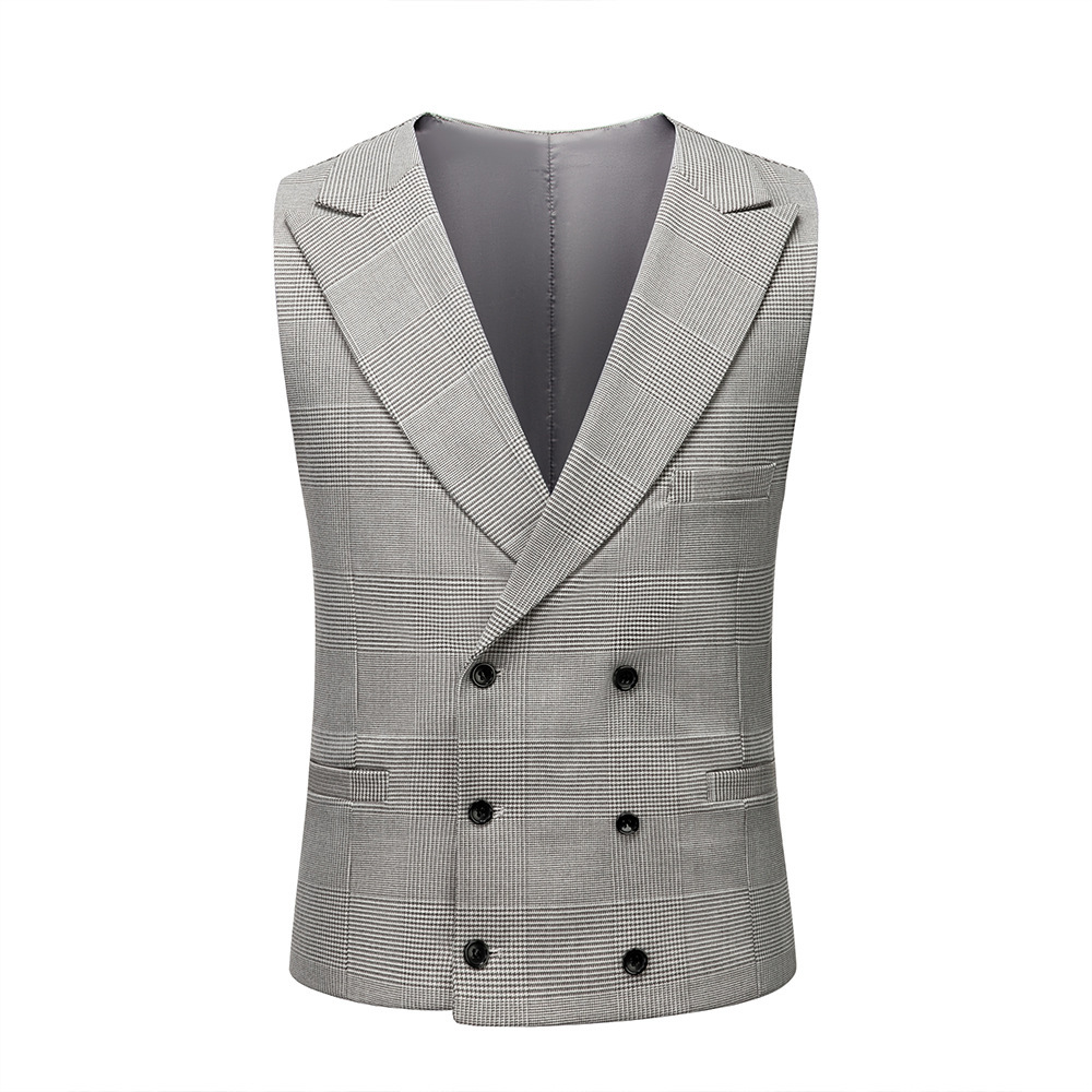 Men's Suit Slim Fit Business Casual Gray Lattice Pattern Three-piece Suit