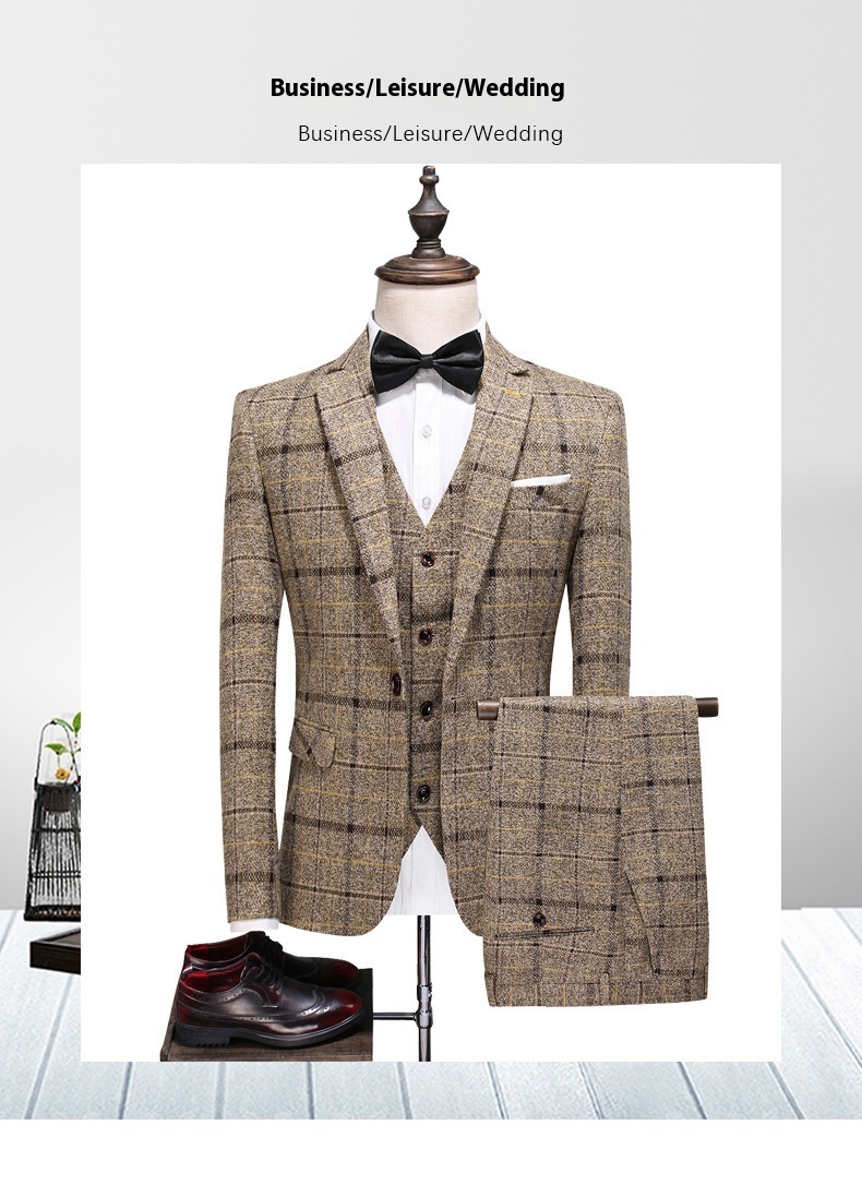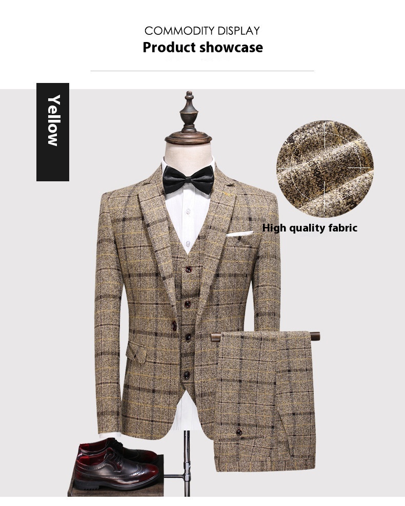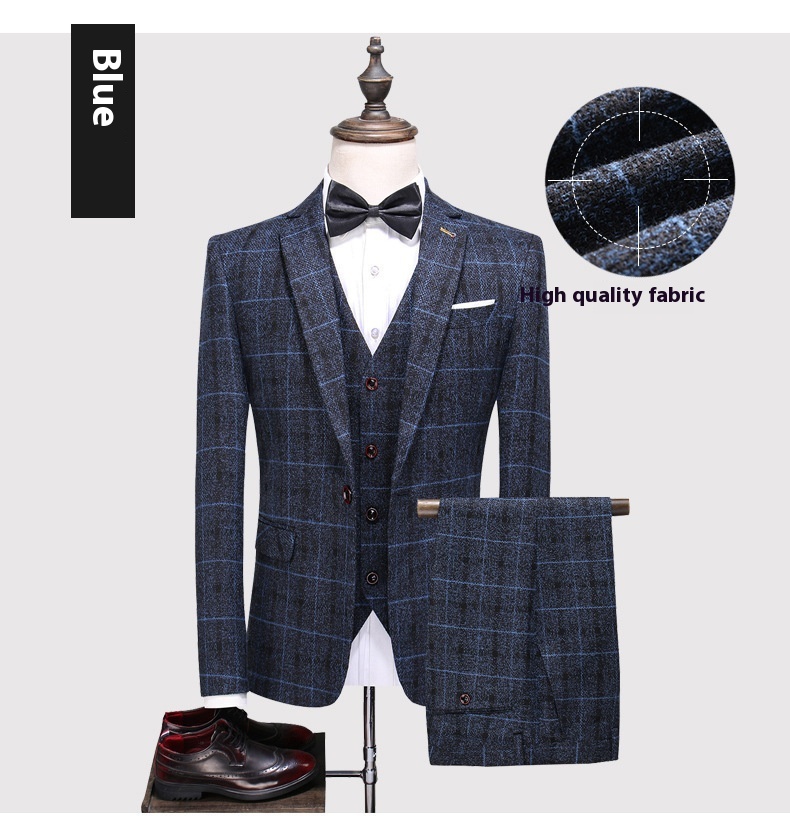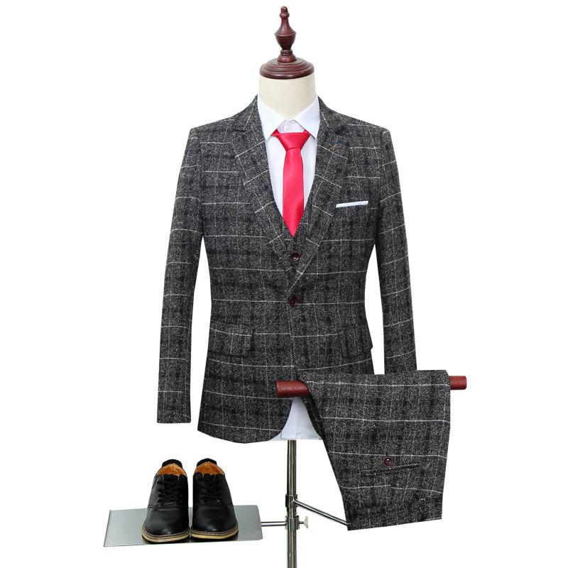 Men's Suit Three-piece Suit Korean Style Slim-fitting English Style Casual
