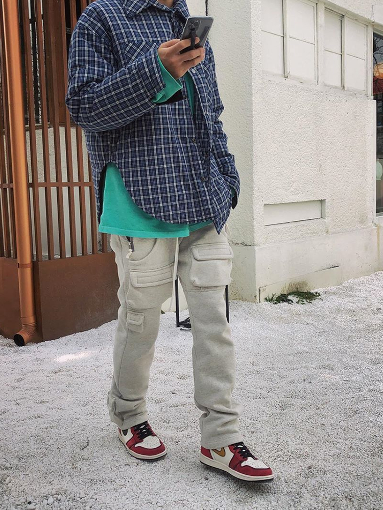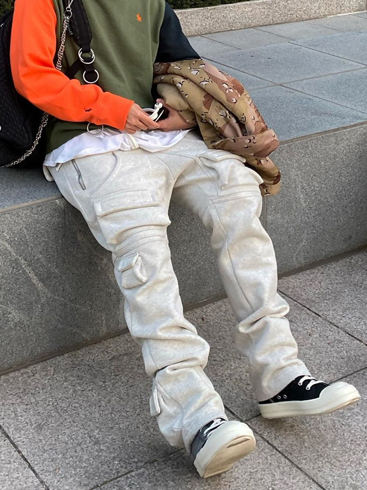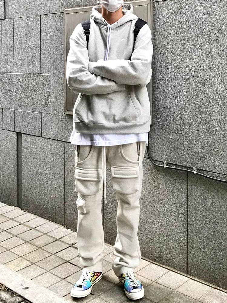 Men's Summer Casual Loose Multi-pocket Gray Boys' Sweatpants
