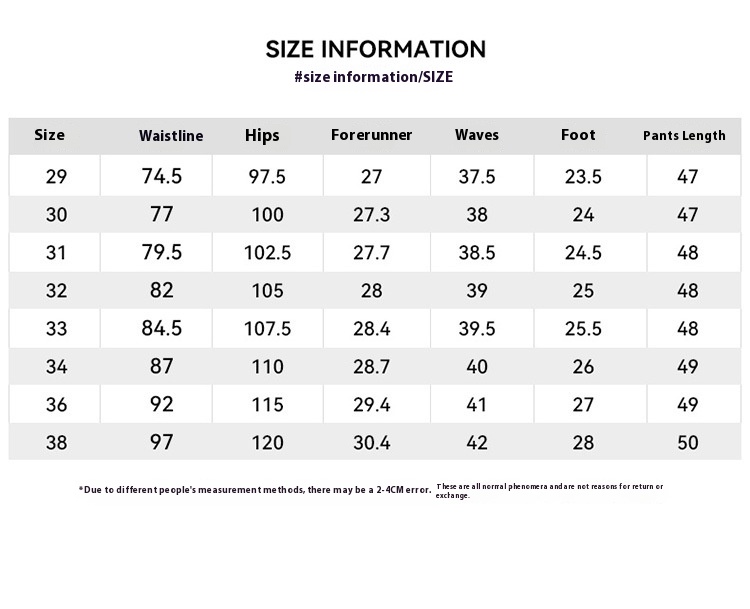 Size: 29, 30, 31, 32, 33, 34, 36, 38