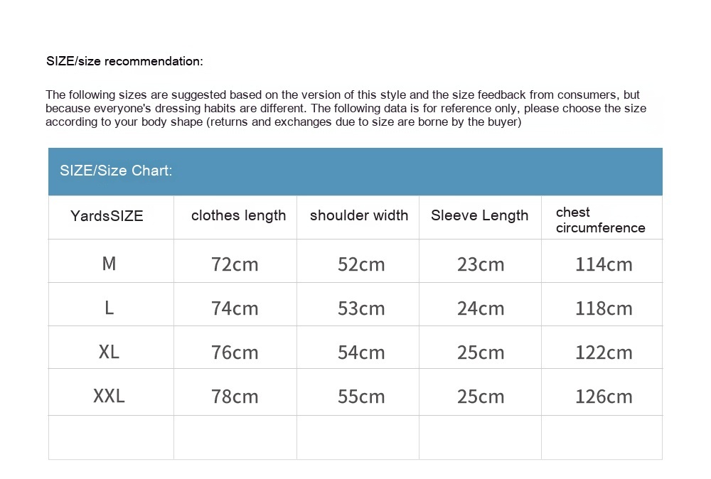 1. Asian sizes are 1 to 2 sizes smaller than European and American people. Choose the larger size if your size between two sizes. Please allow 2-3cm differences due to manual measurement. 2. Please check the size chart carefully before you buy the item, if you don't know how to choose size, please contact our customer service. 3.As you know, the different computers display colors differently, the color of the actual item may vary slightly from the following images.