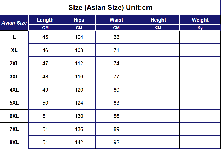 Size: L, XL, 2XL, 3XL, 4XL, 5XL, 6XL, 7XL, 8XL