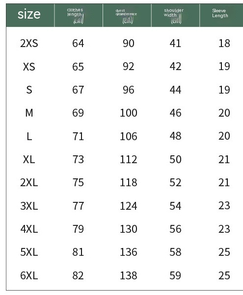 Size: 2XS,XS,S,M,L,XL,XXL,XXL,XXXXL,5XL,6XL