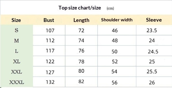 Sizes: S, M, L, XL, XXL, XXXL