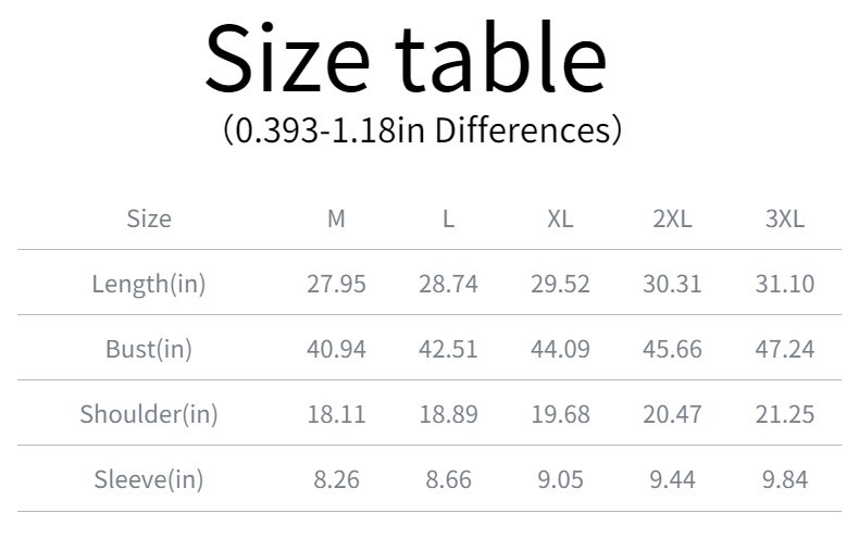 Note: 1. Asian sizes are 1 to 2 sizes smaller than European and American people. Choose the larger size if your size between two sizes. Please allow 2-3cm differences due to manual measurement. 2. Please check the size chart carefully before you buy the item, if you don't know how to choose size, please contact our customer service. 3.As you know, the different computers display colors differently, the color of the actual item may vary slightly from the following images.