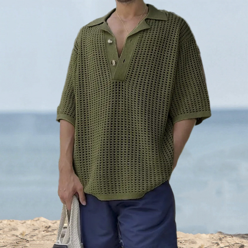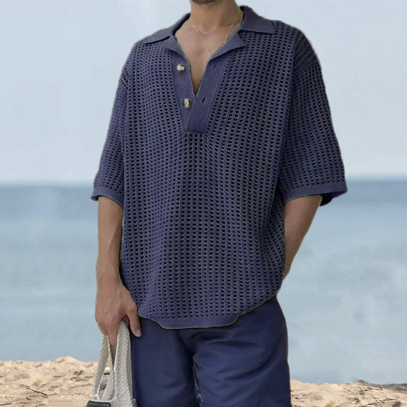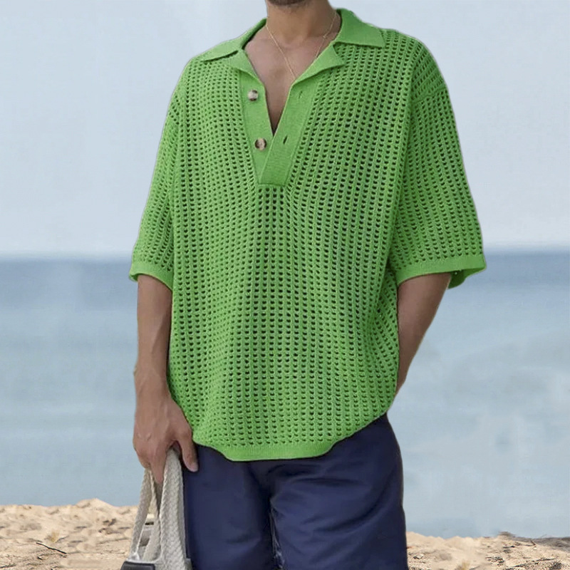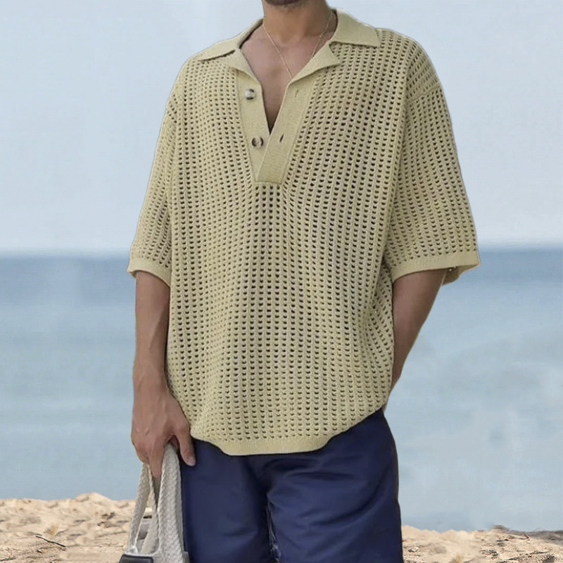 Men's Summer V-neck Hollow Short-sleeved Sweater