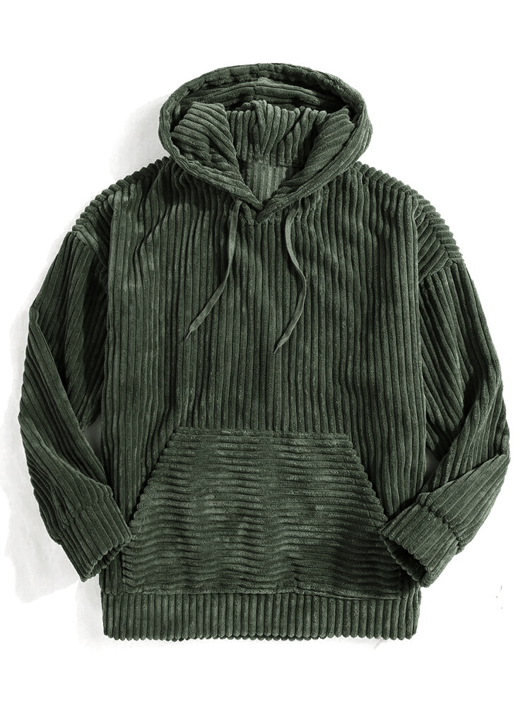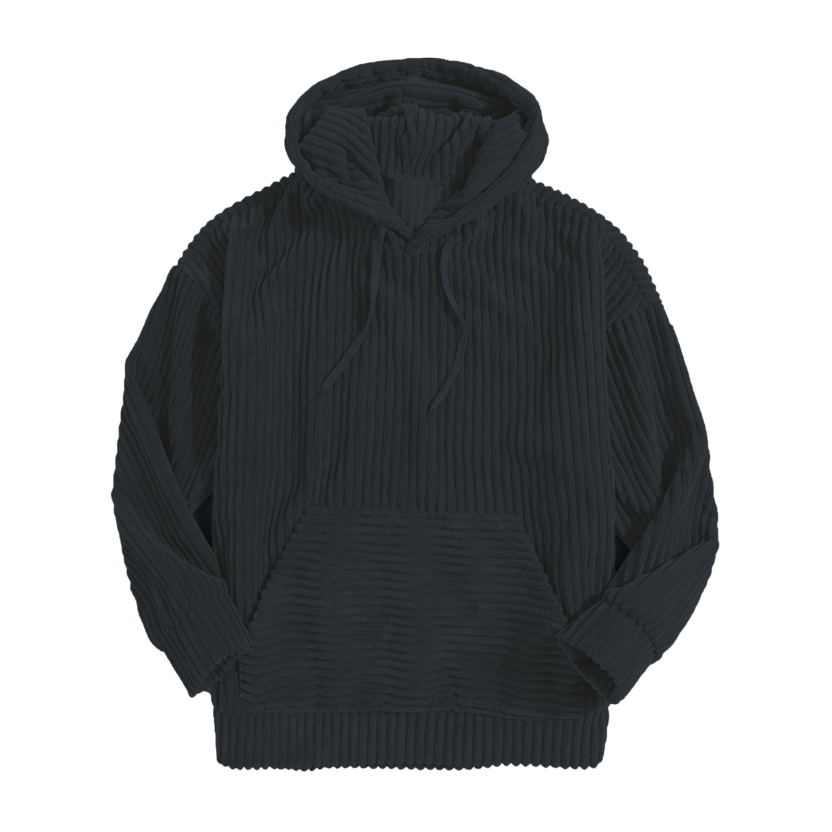 Men's Sweater Thick Corduroy Long Sleeve Solid Color Kangaroo Pocket Hanging Shoulder Hoodie