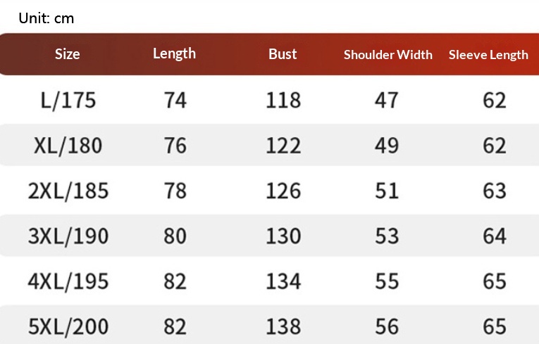 Sizes: L, XL, XXL, 3XL, 4XL, 5XL
