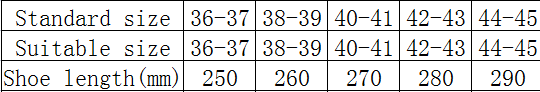 Size: 36-37 is suitable for usual 35-36, 38-39 is suitable for usual 37-38, 40-41 is suitable for usual 39-40, 42-43 is suitable for usual 40-42, 44-45 is suitable for usual 43-44