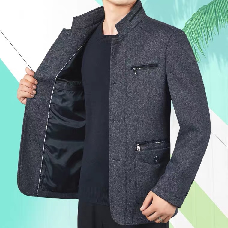 Color: Black-gray stand-up collar, black-gray lapel collar