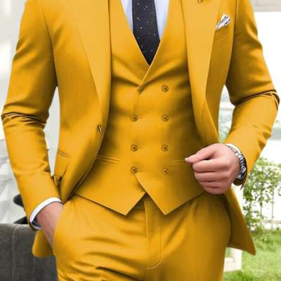 Mens Three-Piece Solid-Color High-End Stylish Suit With A Sophisticated Vibe