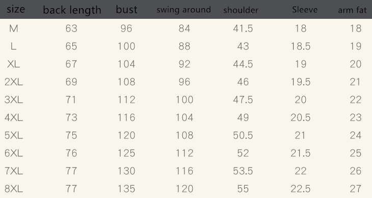 Size:M,L,XL,XXL,XXXL,XXXXL,