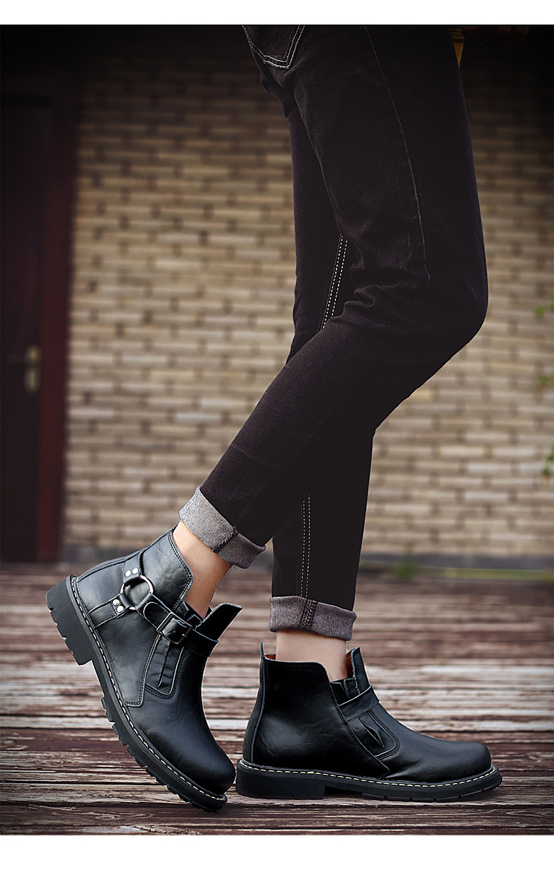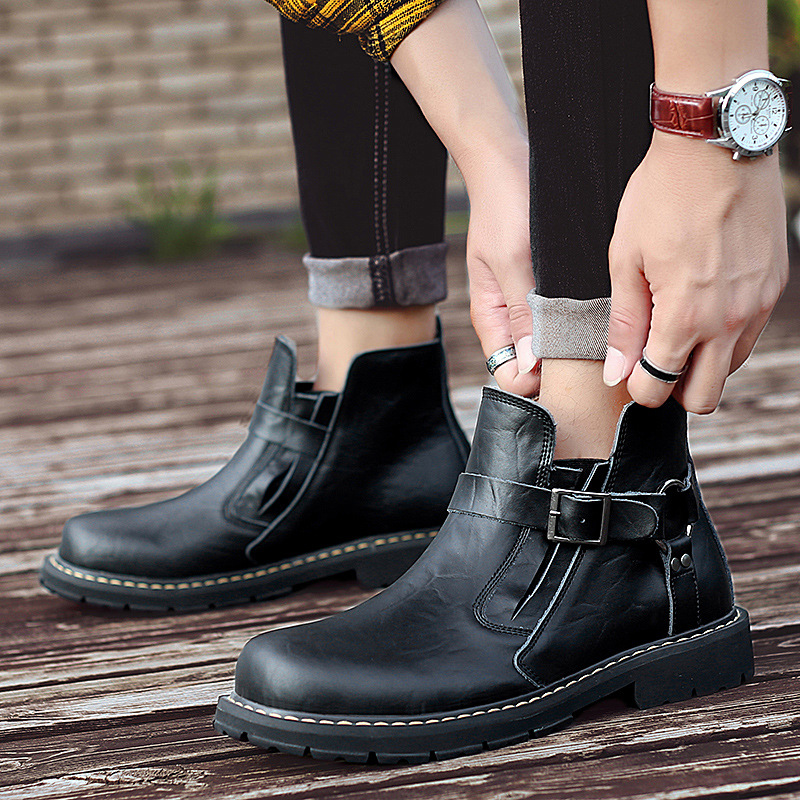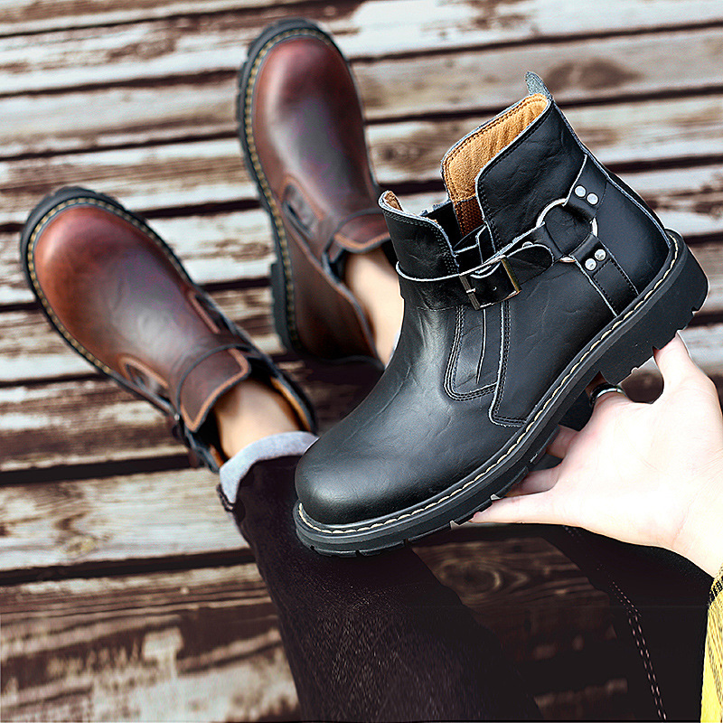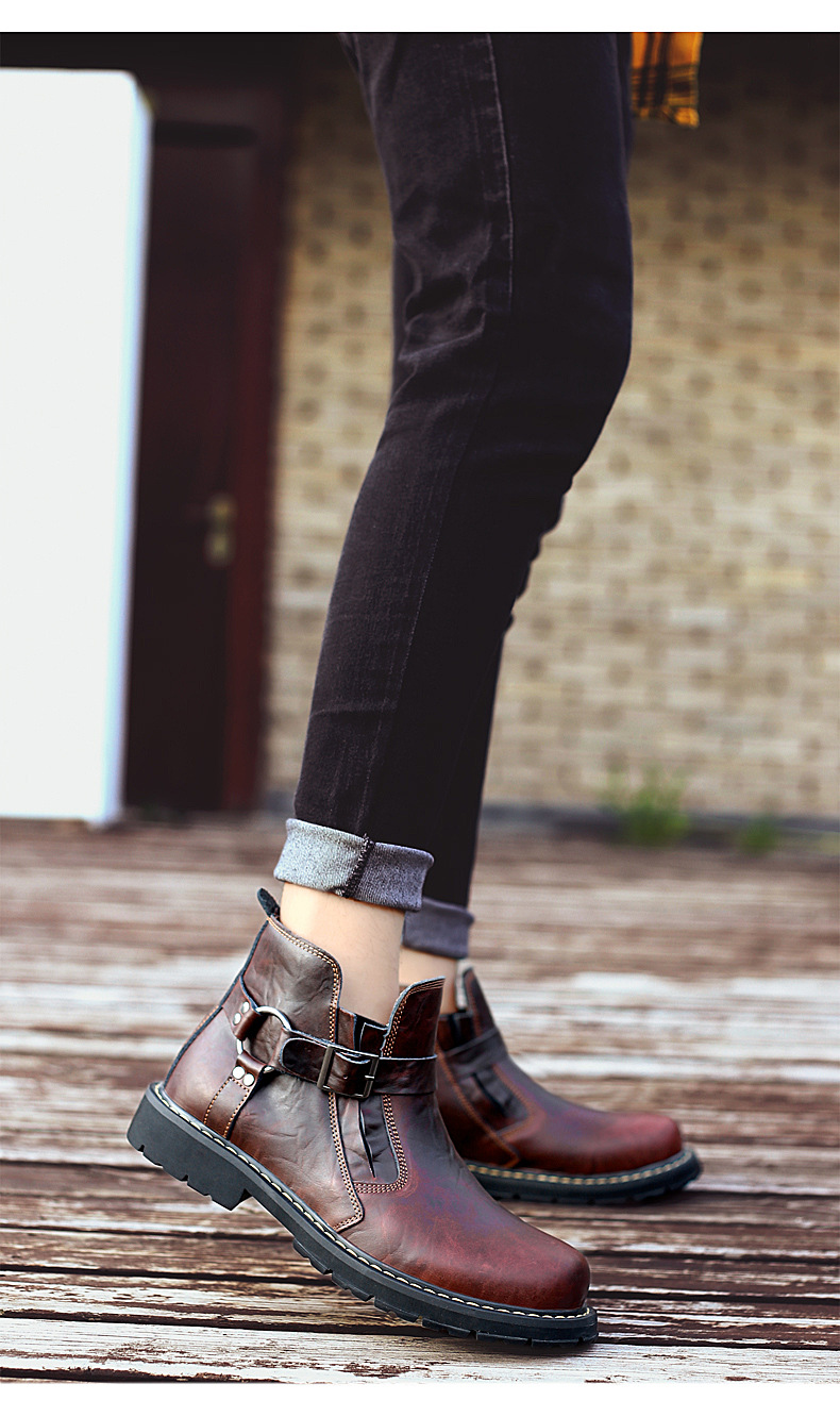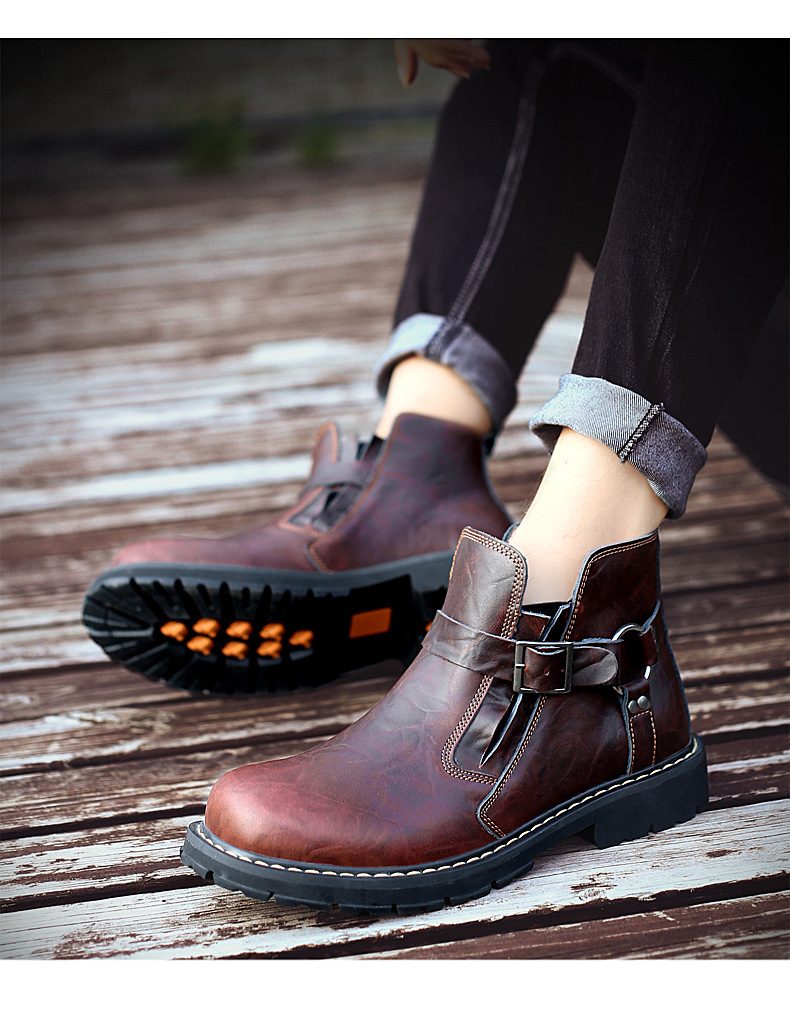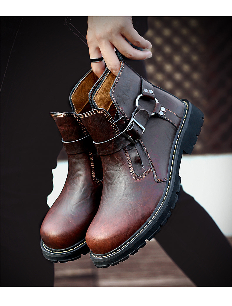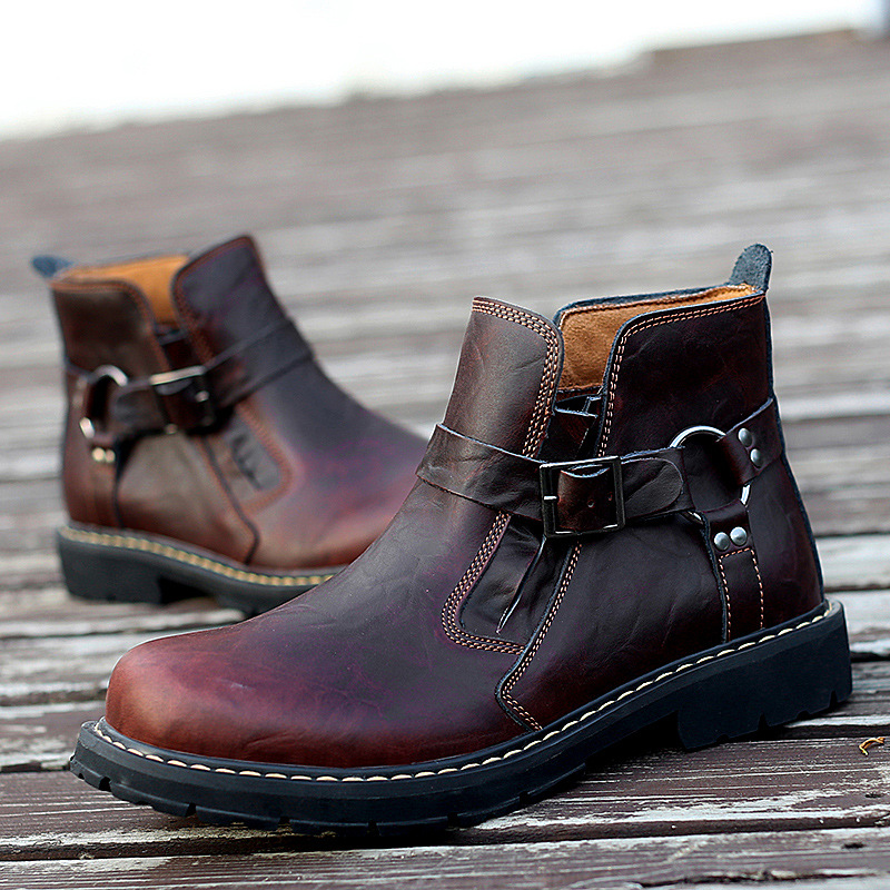 Men's Tooling Boots British Style Mid-Top High-Top Leather Shoes