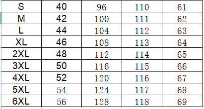Size: S, M, L, XL, XXL, XXXL, XXXXL, 5 XL, 6 XL