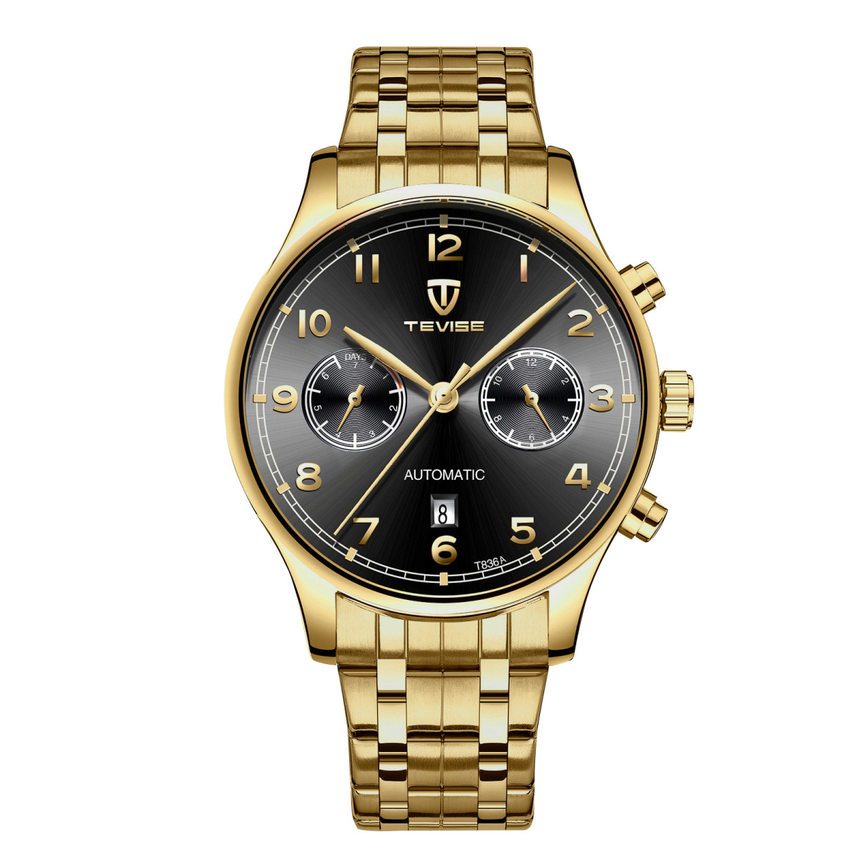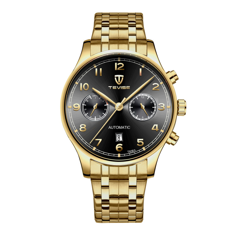 Color: T836A-rose black leather, T836A-white leather, T836A-all gold and black leather, T836A-all gold and black steel belt, T836A-blue leather