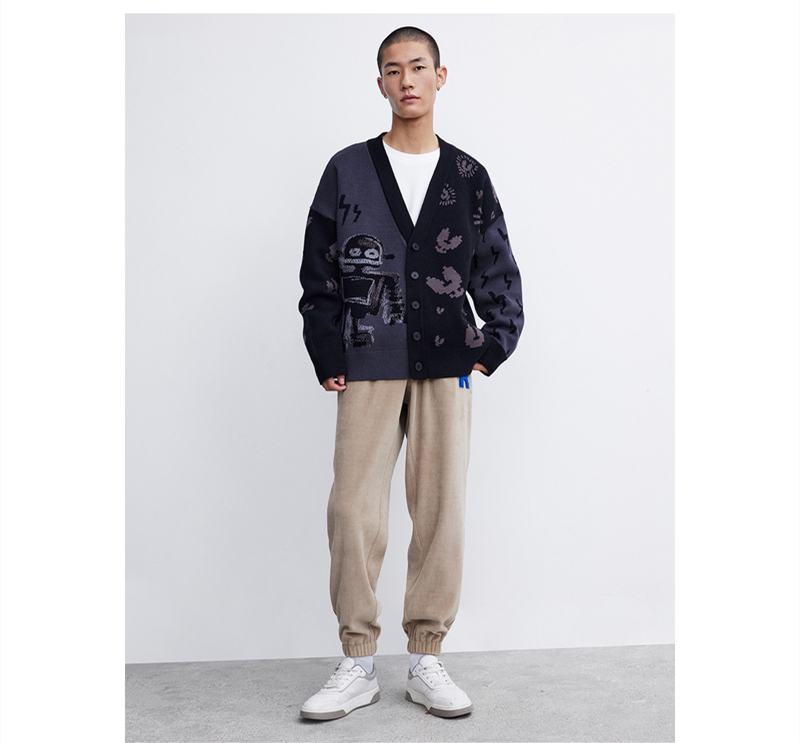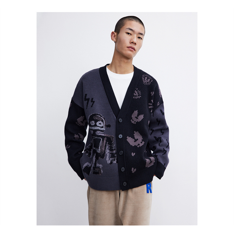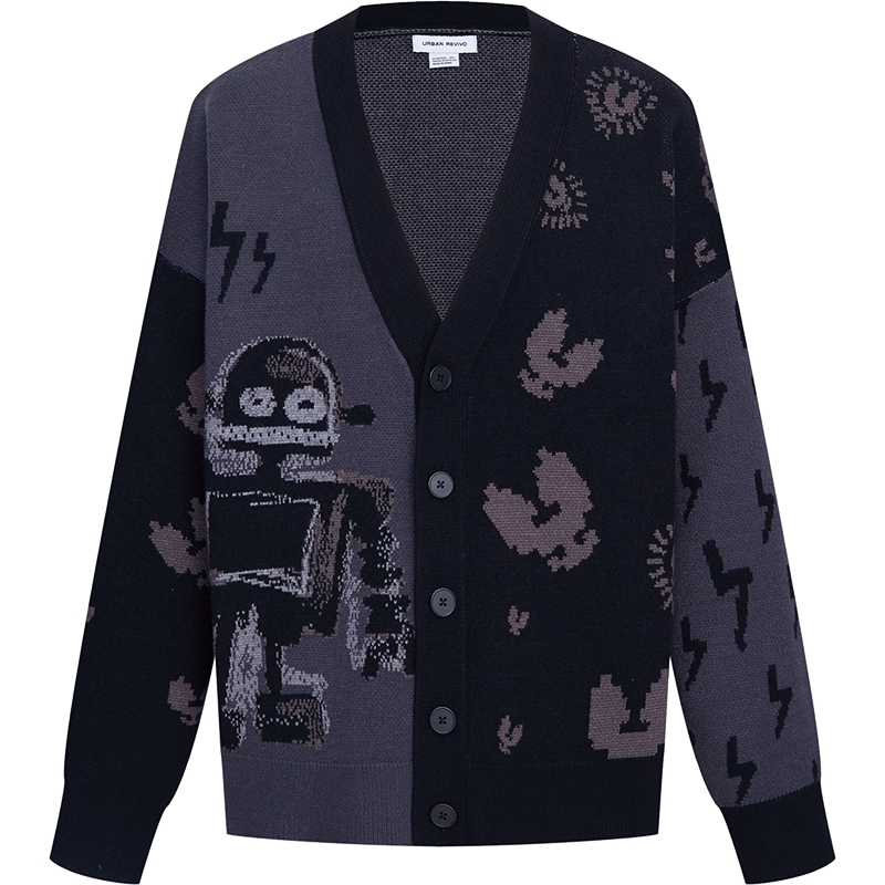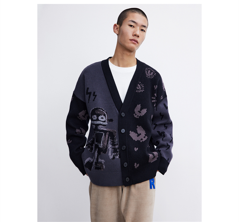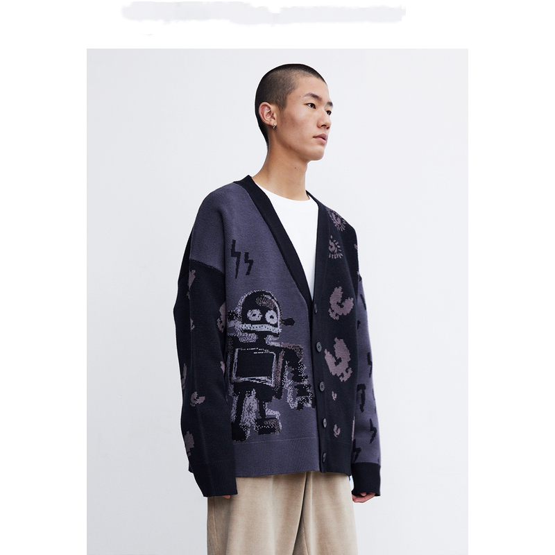 Men's Trendy Funny Robot Jacquard Sweater Knit Jacket