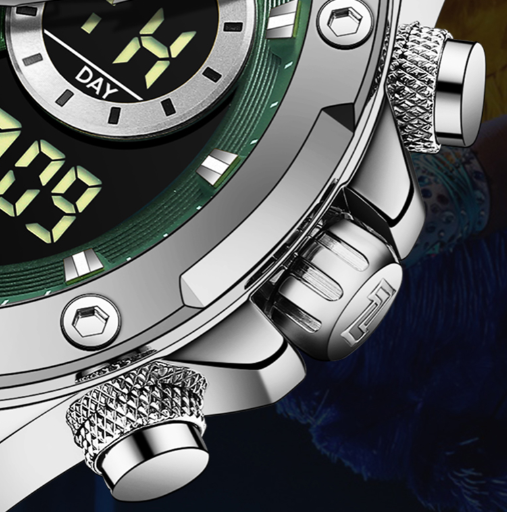 Additional features: 24-hour indication GMT two places, countdown, alarm clock, calendar, luminous, week display, month display