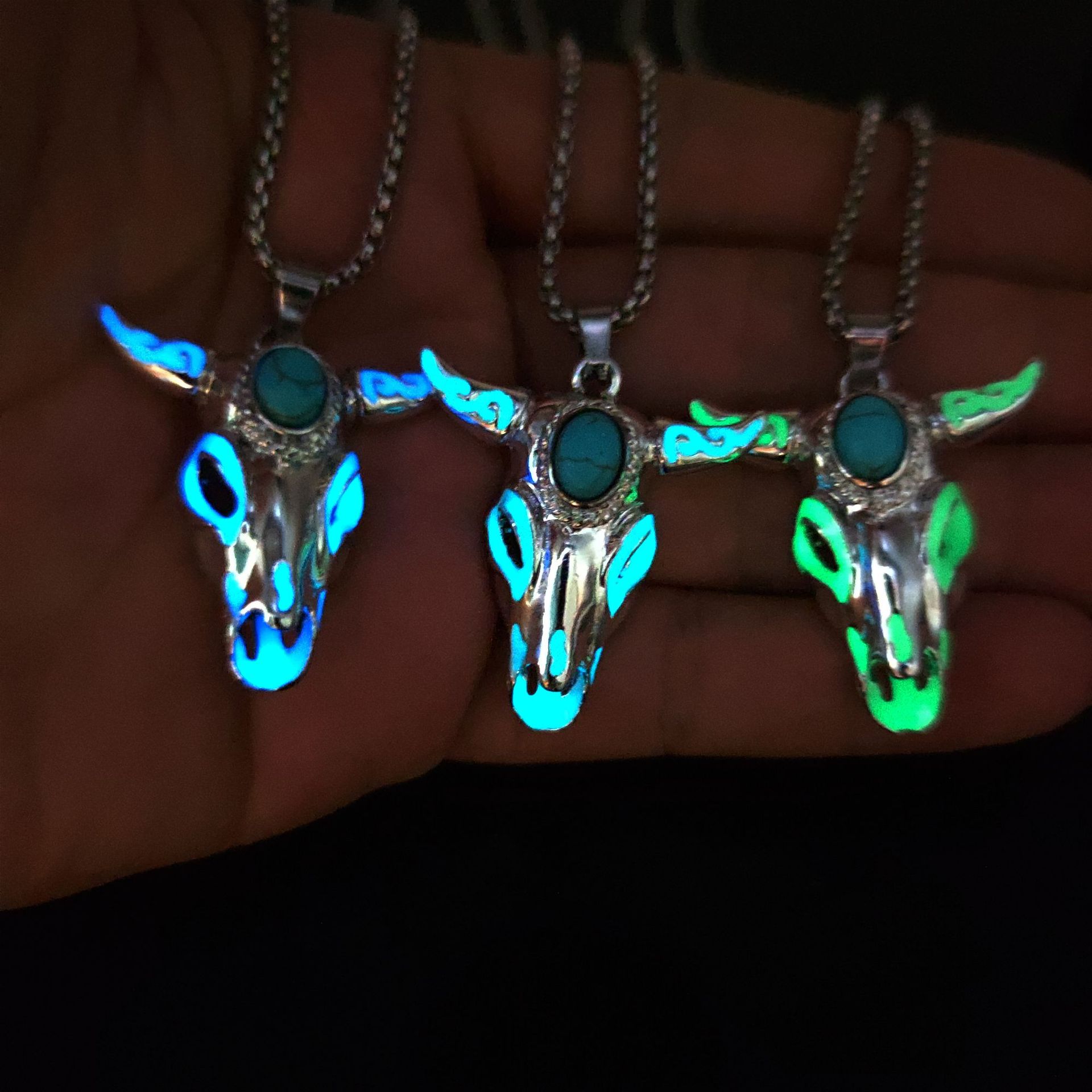 Color: yellow light single pendant, blue light single pendant, blue-green light single pendant, yellow light pendant necklace, blue light pendant necklace, blue-green light pendant necklace