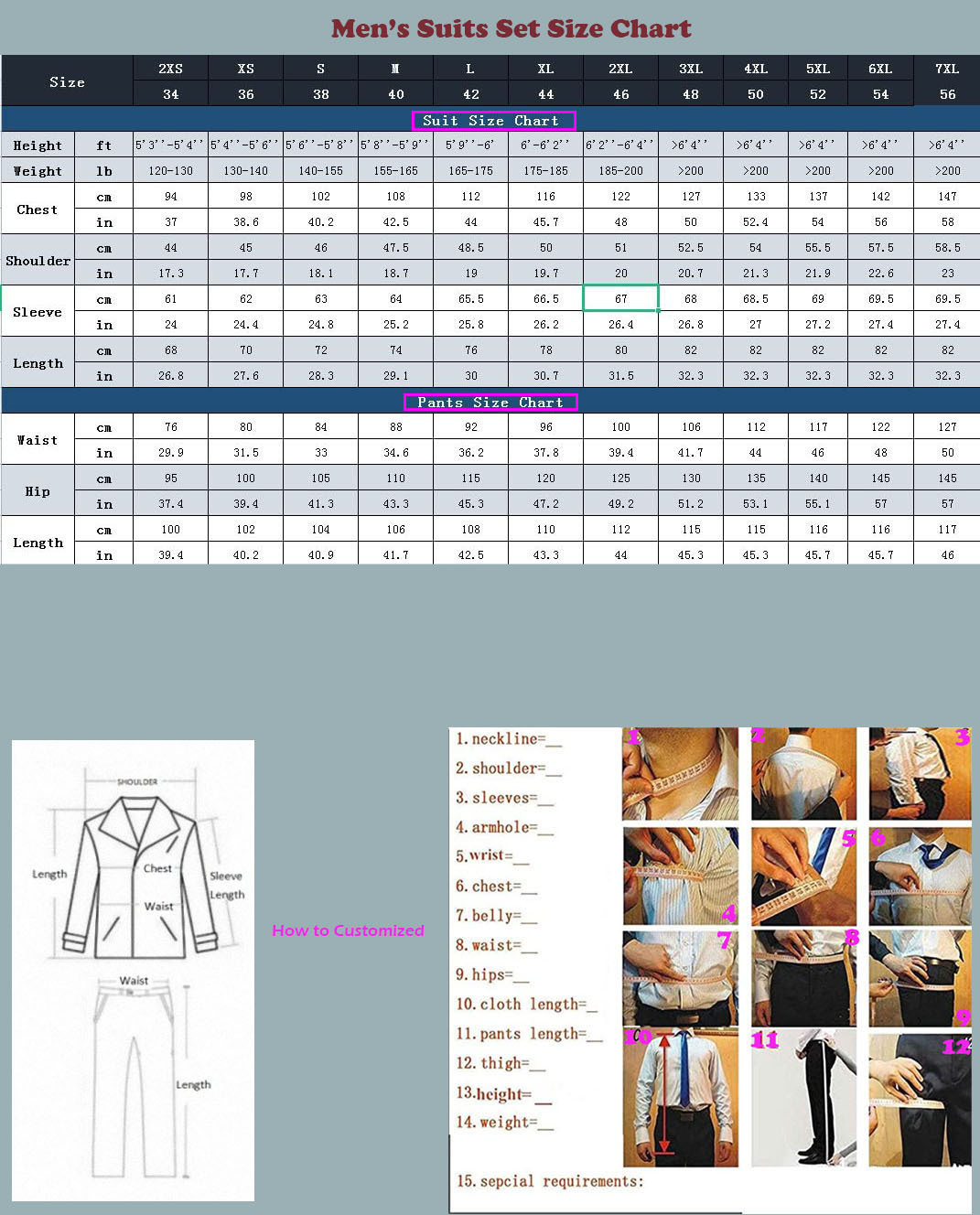 Size: XXS,XS,S,M,L,XL,XXL,XXXXL,5XL,6XL,7XL