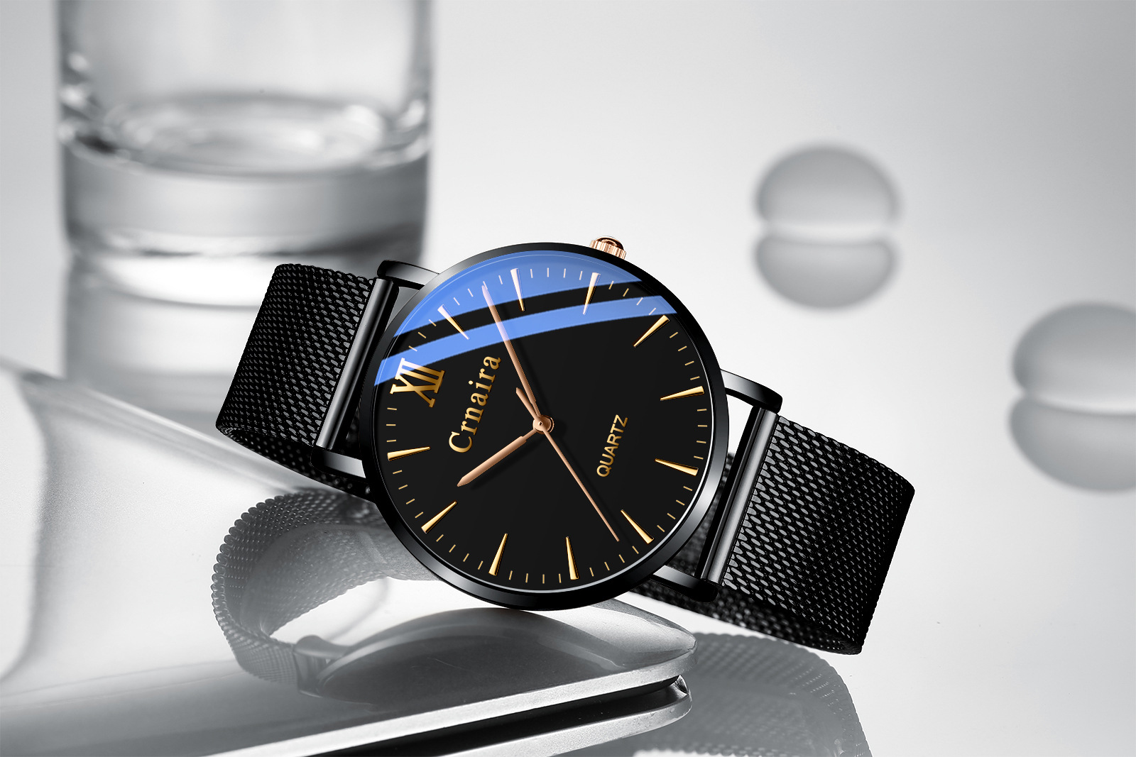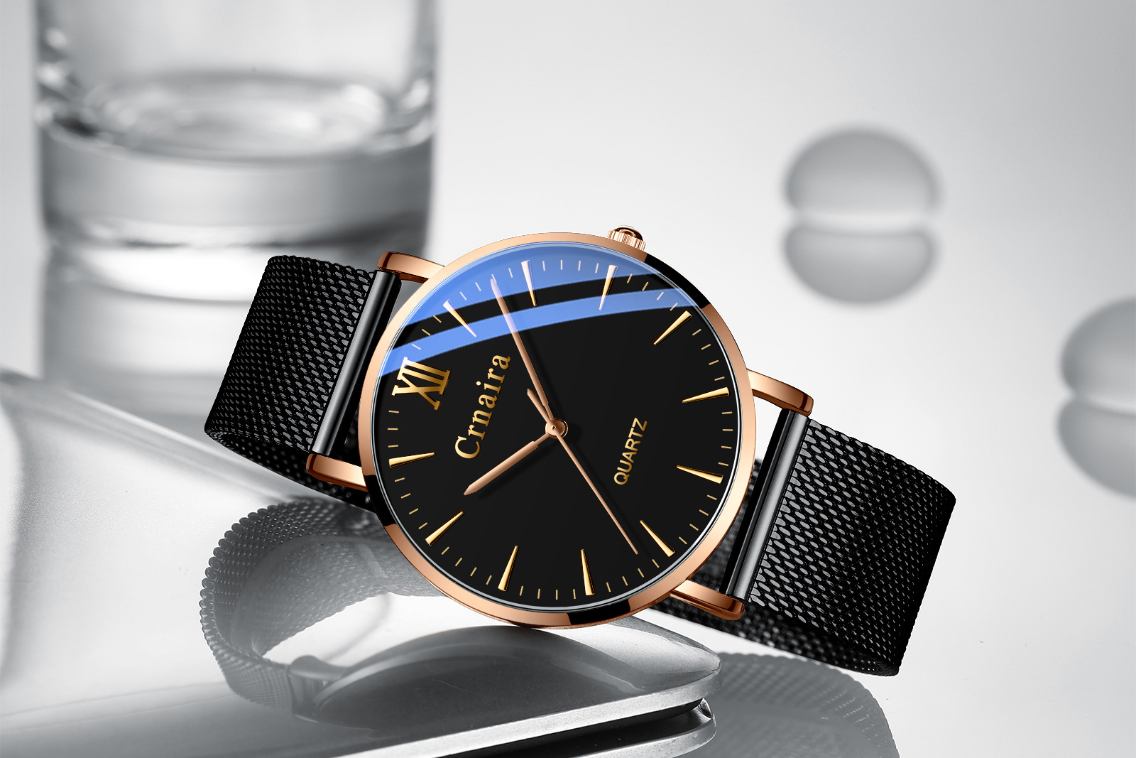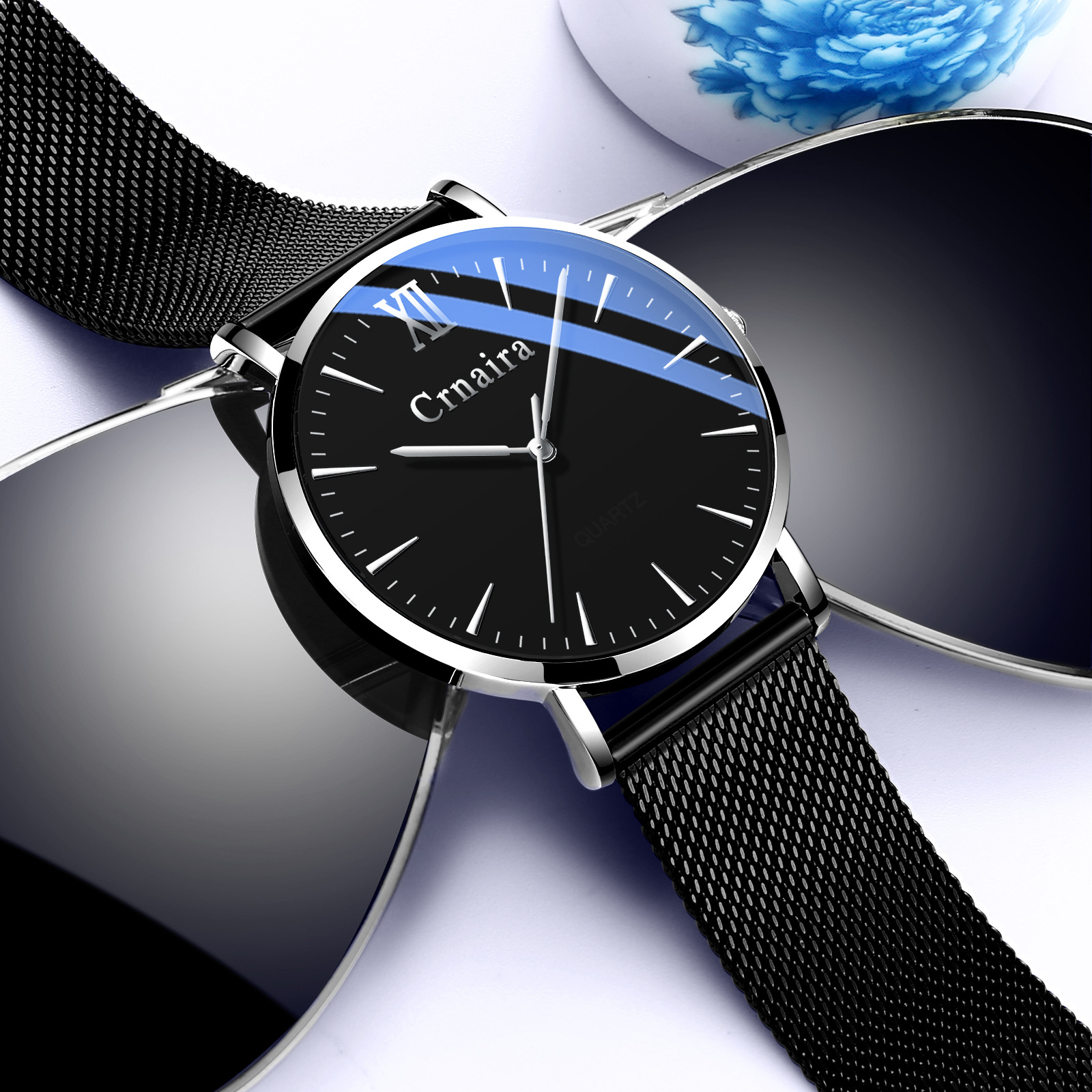 Color: C3078 A black shell rose red nail black surface black mesh belt, C3078 B black shell silver nail black surface black mesh belt, C3078 C rose gold shell black surface black mesh belt, c3078 D silver shell black surface black mesh belt, c3078 E Silver Shell black surface silver mesh belt, C3078 F rose gold shell black surface belt, C3078 G rose gold shell white surface Brown Belt
