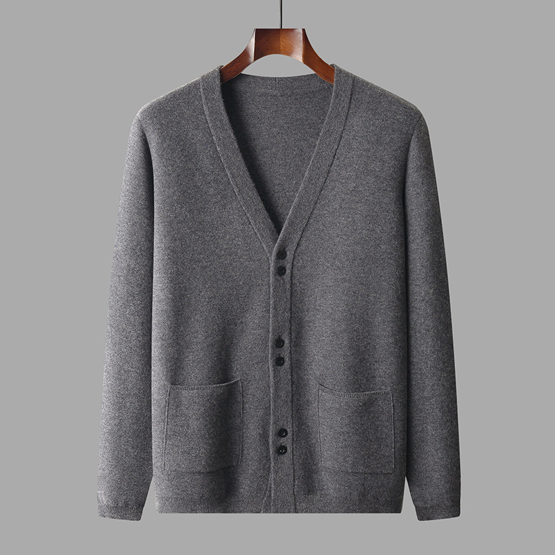 Men's V-neck All-matching Loose Solid Color Knitted Jacket