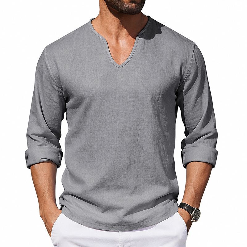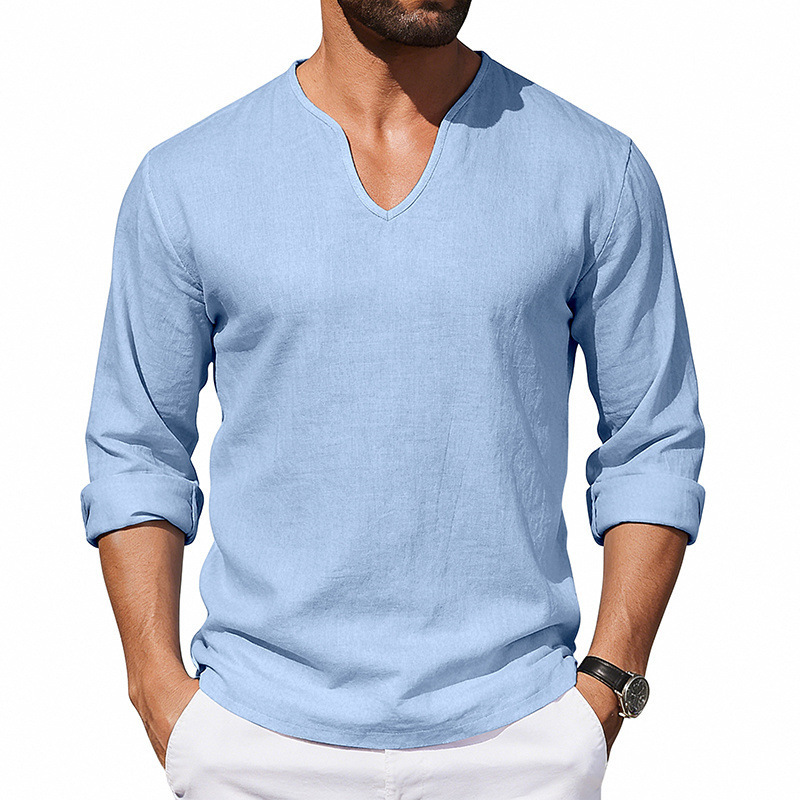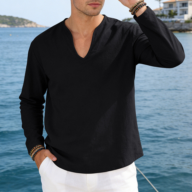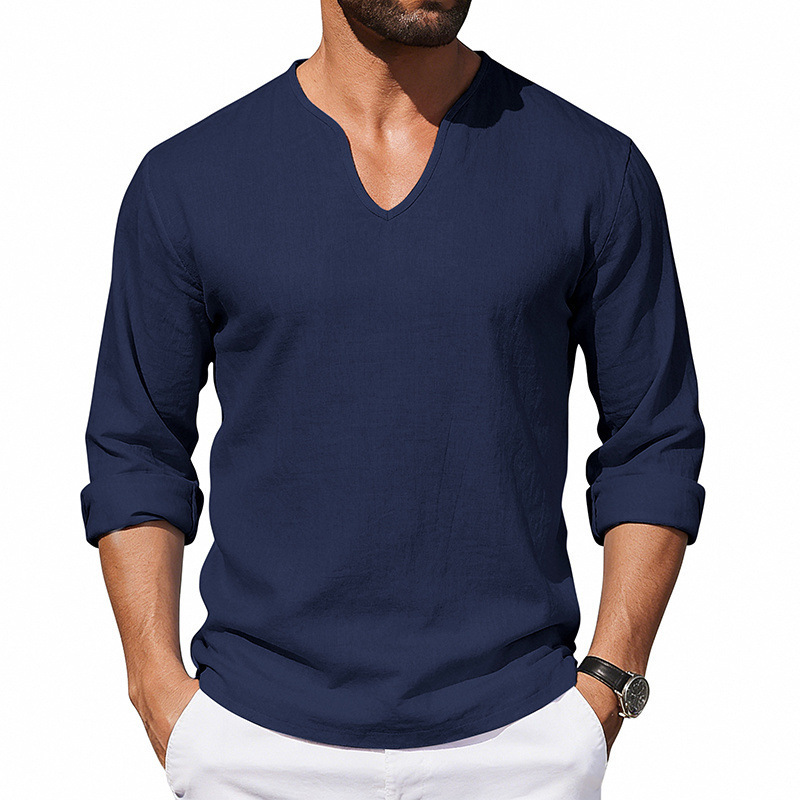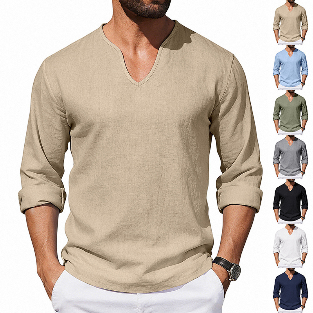 Men's V-Neck Plus-Size Long-Sleeve T-Shirt