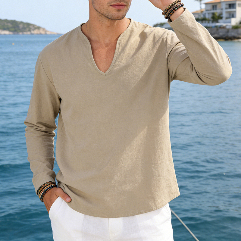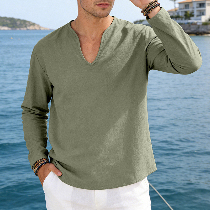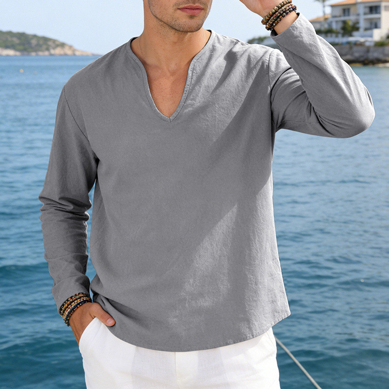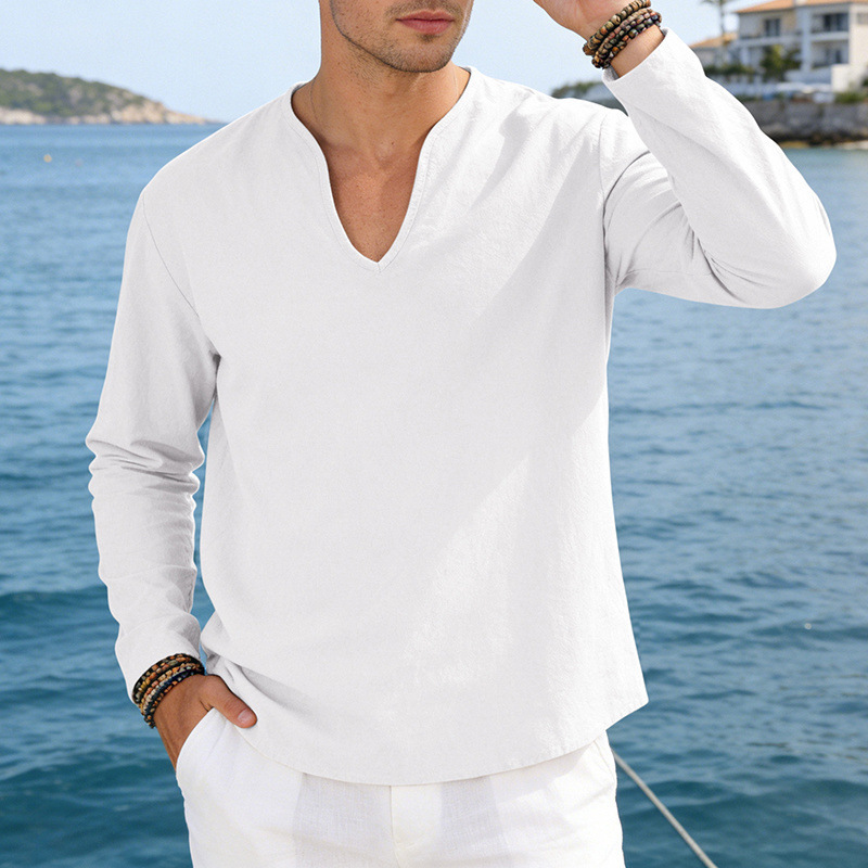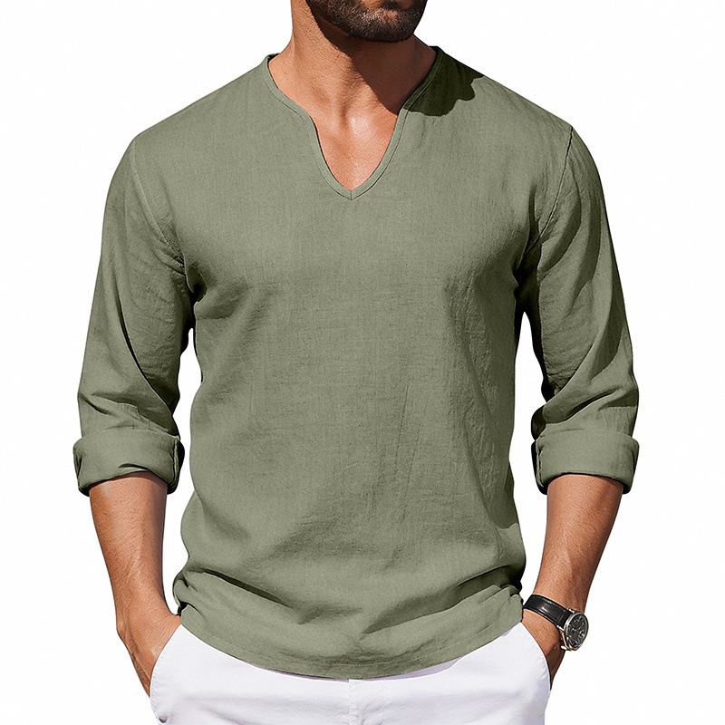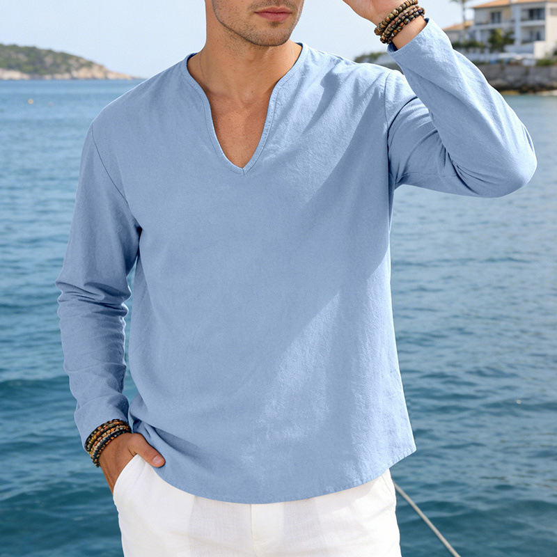 Men's V-Neck Plus-Size Long-Sleeve T-Shirt