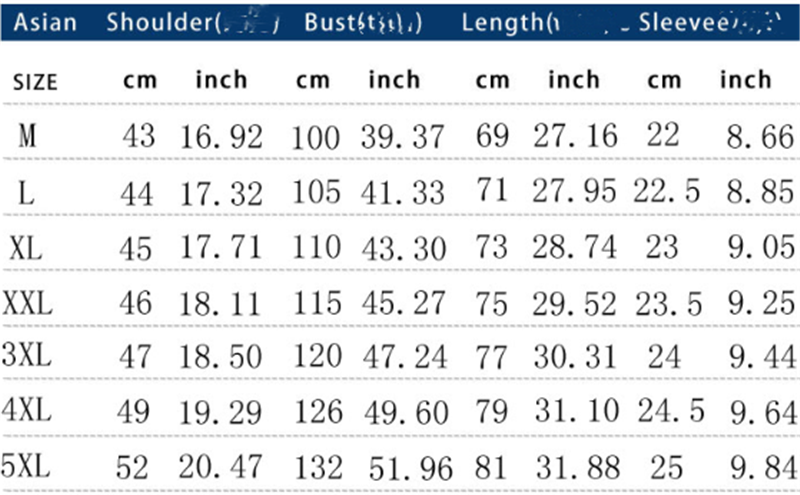 Size: M, L, XL, 2XL, 3XL, 4XL, 5XL
