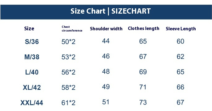 Size: 36, 38, 40, 42, 44