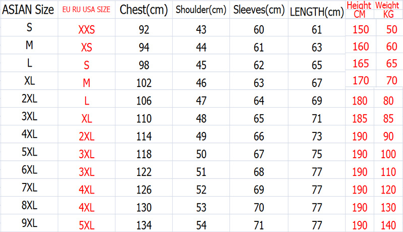 Size: S/M/L/XL/XXL/3XL/4XL/5XL/6XL/7XL/8XL