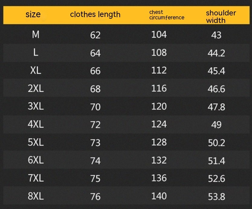 Size: M,L,XL,2XL,3XL,4XL,5XL,6XL,7XL,8XL