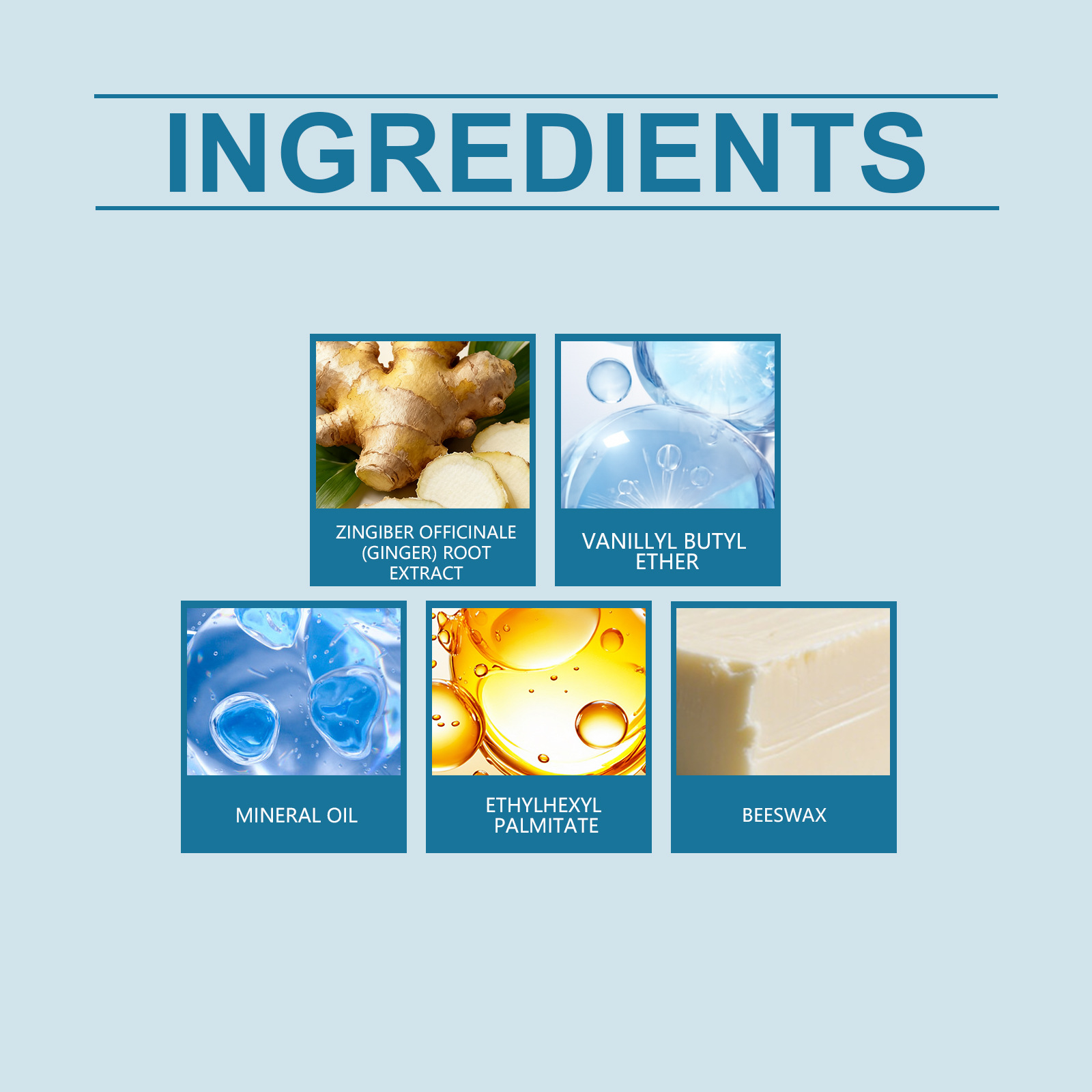 Active ingredients: ginger root extract, vanillin butyl ether.