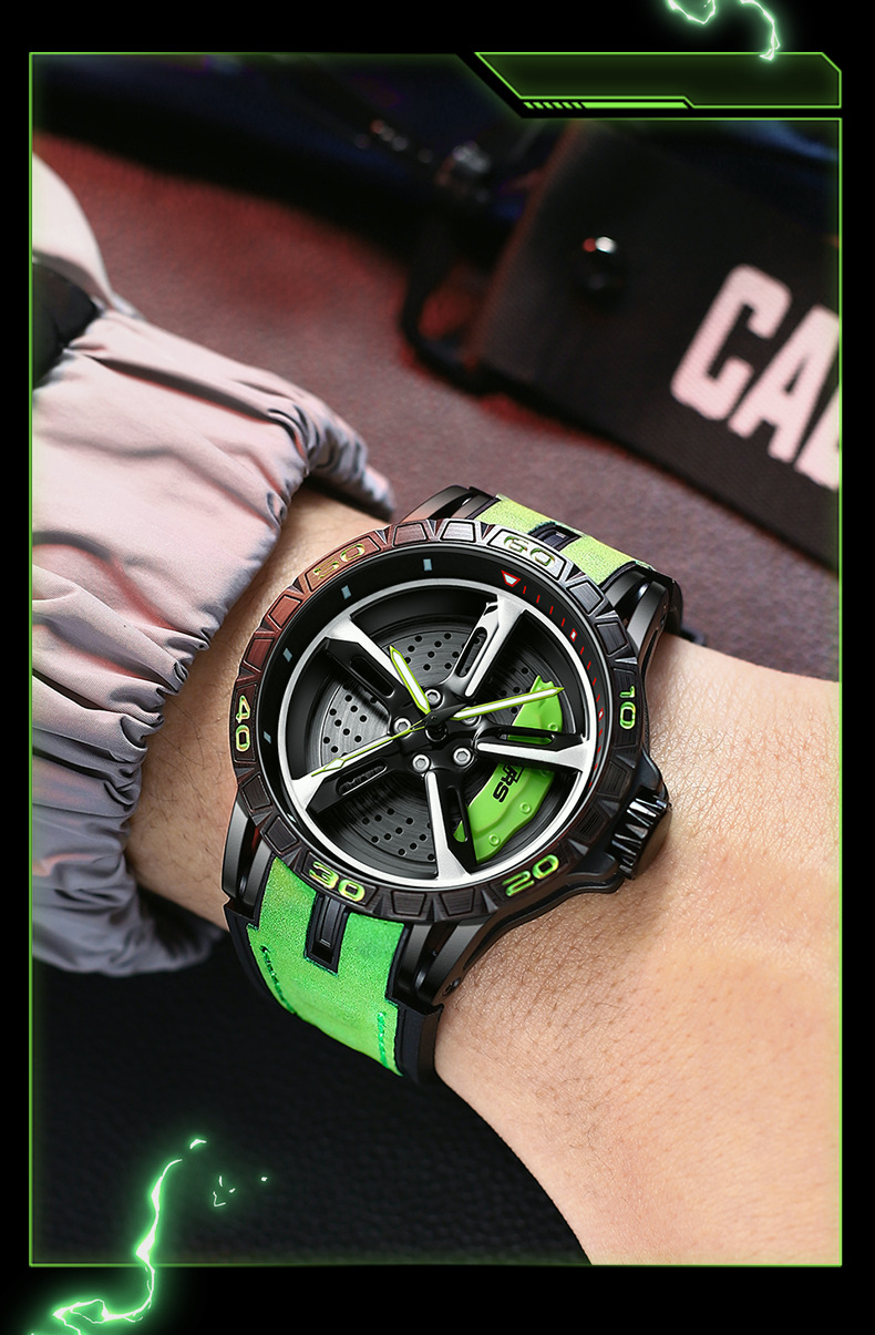 Color: Steel case black face red caliper gray tape rotating luminous, steel case black face green caliper gray tape rotating luminous, black shell black face red caliper black tape rotating luminous, black shell black face green caliper black tape rotating luminous, black Shell black face red caliper red tape rotating luminous, black shell black face green caliper green tape rotating luminous
