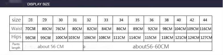 Sizes: 28, 29, 30, 31, 32, 33, 34, 36, 38, 40, 42, 44