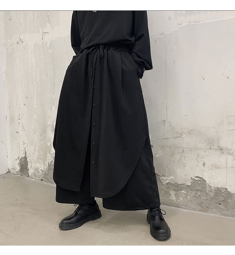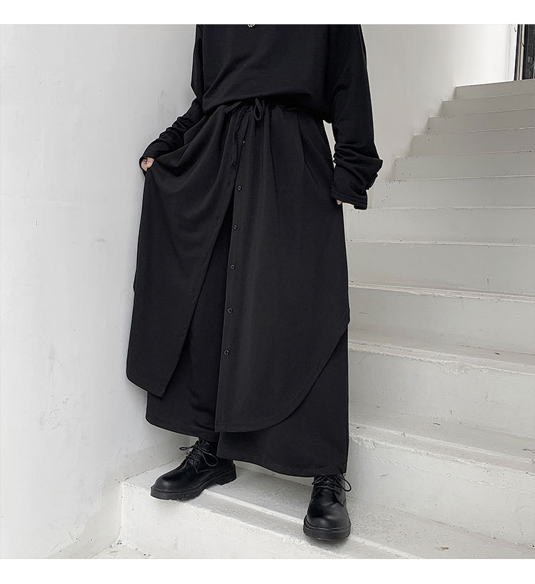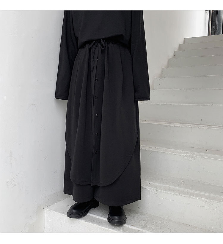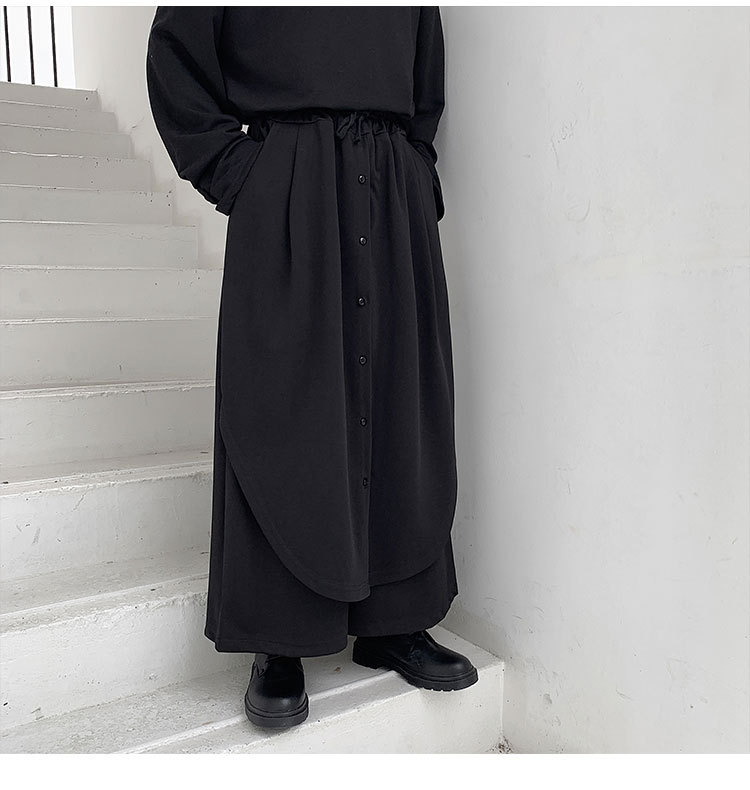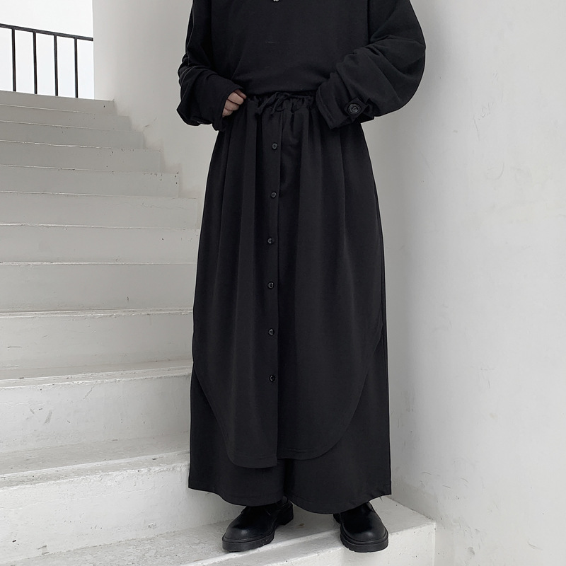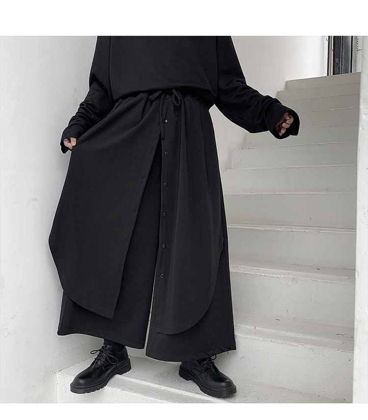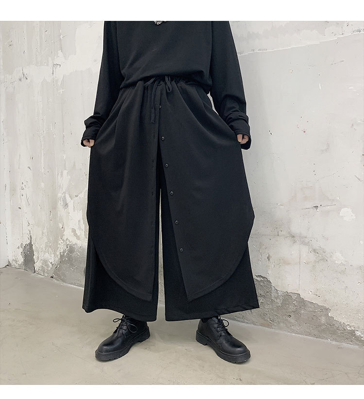 Mens Wide-Leg Pants With Black Solid-Color Layered Buttons
