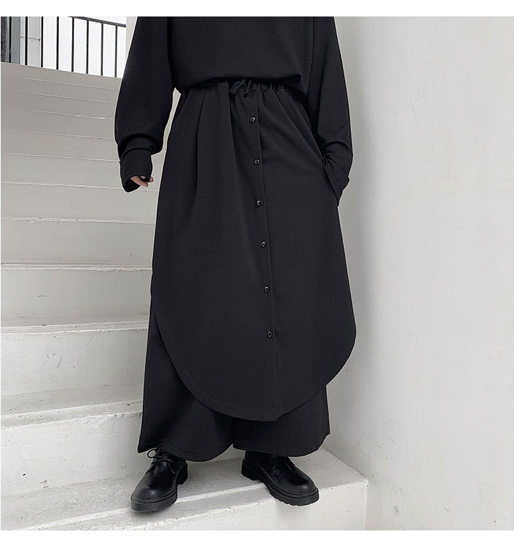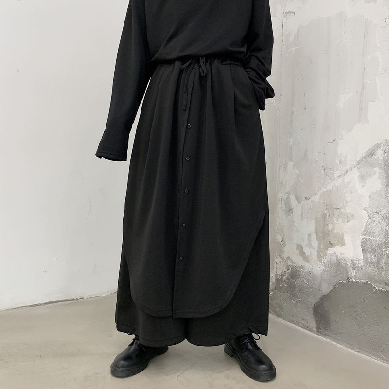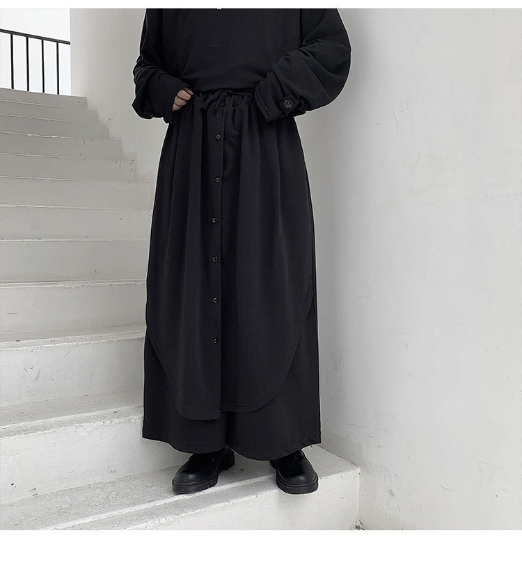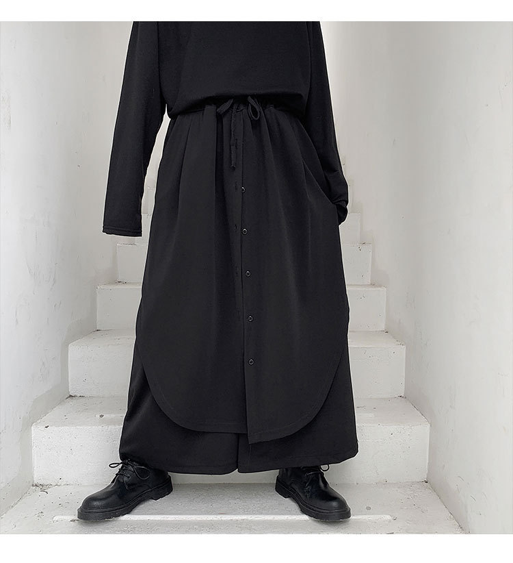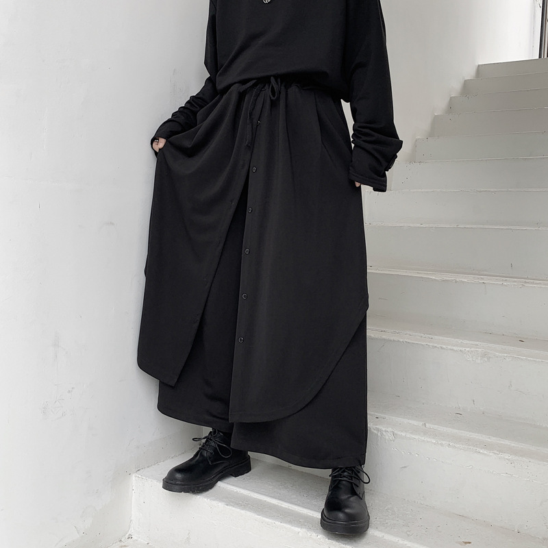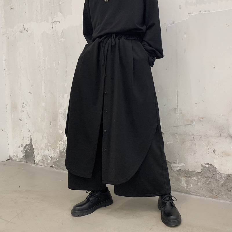 Mens Wide-Leg Pants With Black Solid-Color Layered Buttons