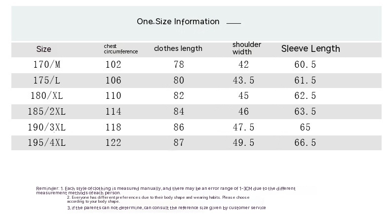 Size: 170/M,175/L,180/XL,185/2XL,190/3XL,195/4XL