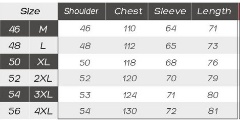 42 XS 44 S 46 M 48 L 50 XL 52 2XL 54 3XL 56 4XL